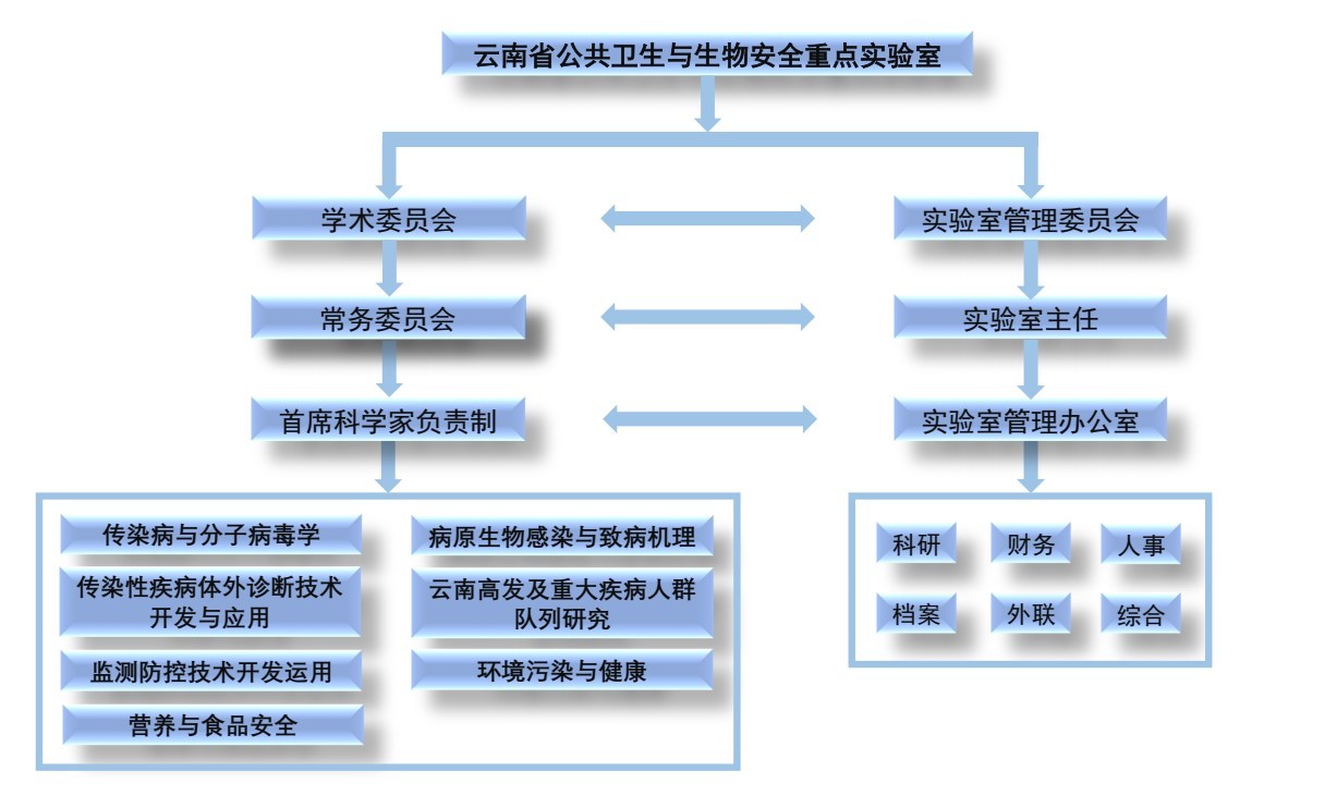 实验室实行主任负责制,其主要职责是全面领导,负责整个实验室的建设发展工作,负责实验室的常规管理,负责聘任首席科学家和课题组长、专兼职研究人员及行政和管理人员。实验室副主任负责实验室的日常管理,实验室专职办公室主任协助处理实验室日常管理事务。