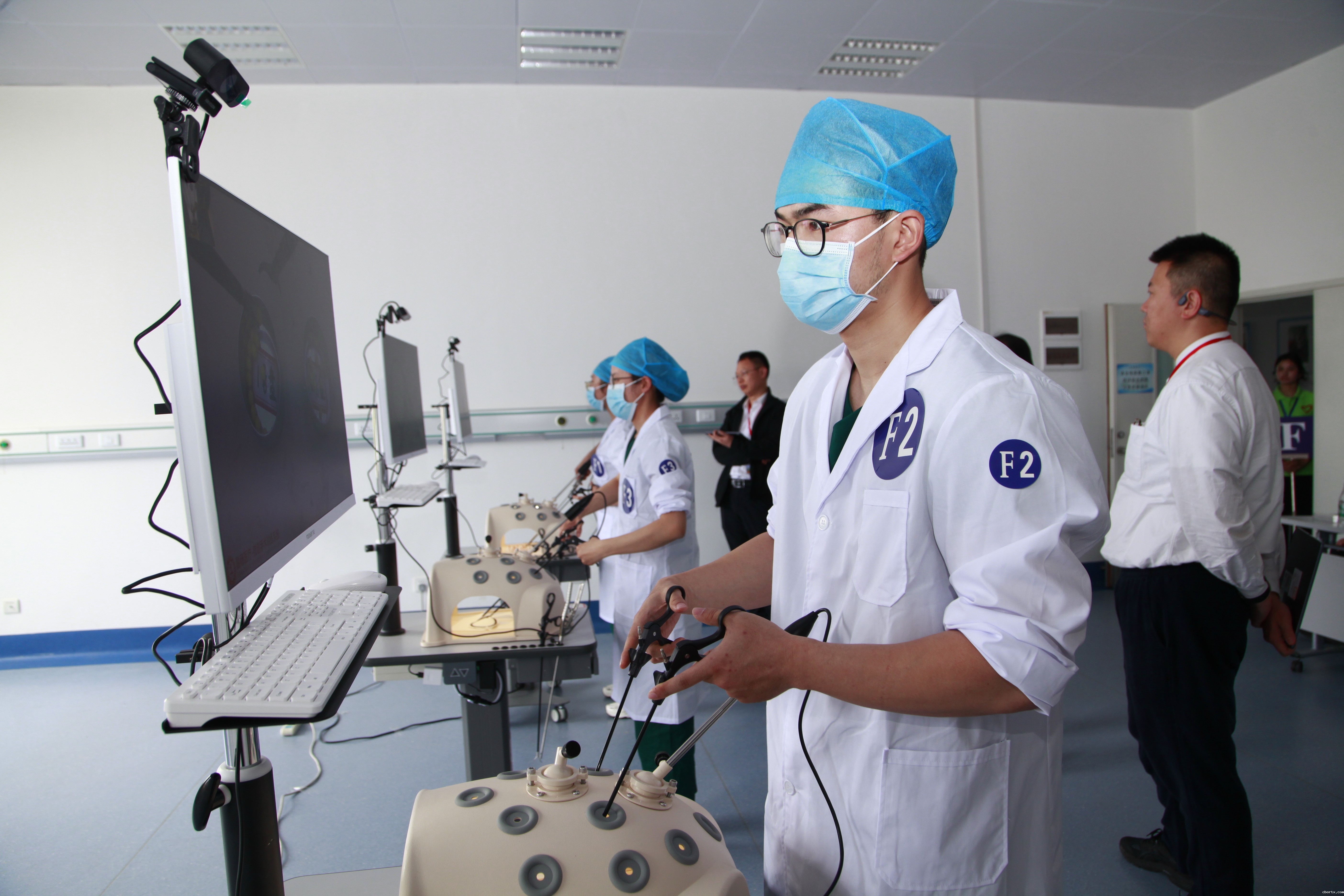 本届临床技能竞赛,按照中国大学生医学技术技能大赛的赛制进行设计,复赛采用赛站式,决赛采用赛道式,使用信息化叫号和无纸化评分。通过整合AI问诊、SP病人、穿戴式装备、腹腔镜模拟器、超级模拟人等高仿真智能设备模拟出不同的临床实战情境,充分体现“以赛促学、以赛促教”的宗旨。