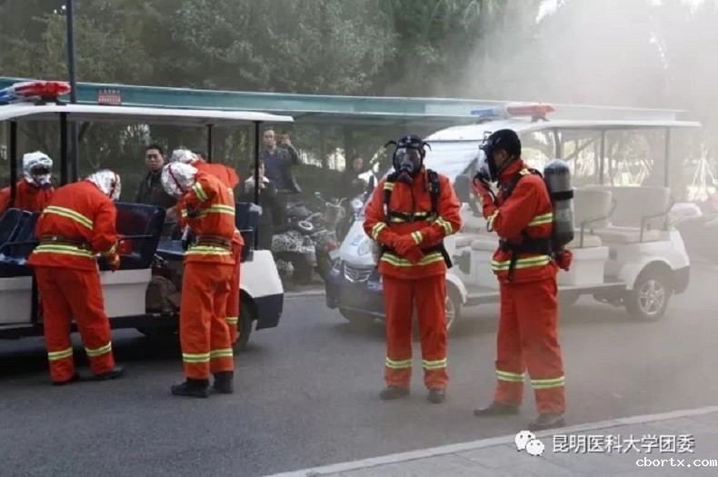 整个演习场景逼真,一楼大厅浓烟滚滚,疏散工作有序高效。