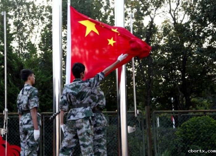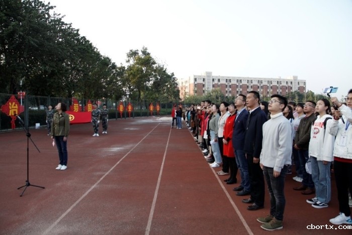 上午7:30,仪仗队迈着铿锵有力的步伐,护送国旗走到国旗台前。伴随着雄壮的国歌,鲜艳的五星红旗冉冉升起。全体人员行注目礼,齐唱国歌。