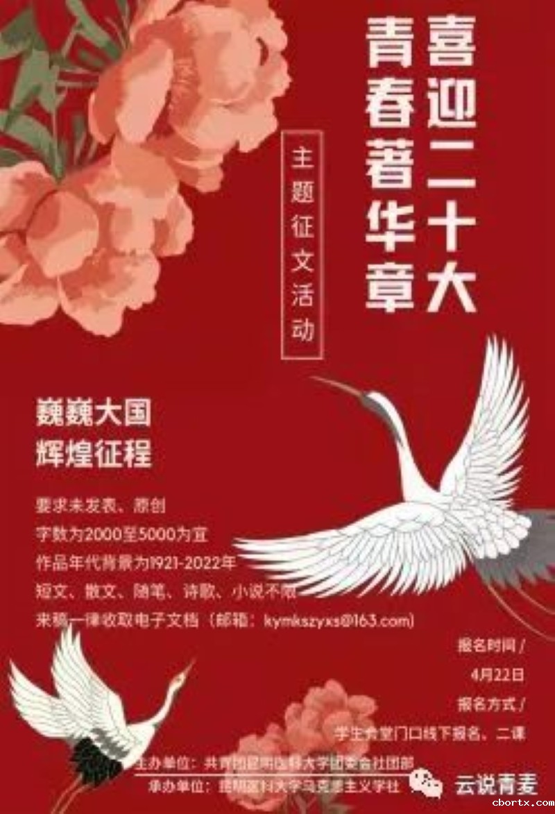 (三)迎接和学习宣传党的二十大,开展“喜迎二十大 青春著华章”主题征文活动、“喜迎二十大,庆国庆,感党恩"朗诵活动、“欢庆二十大,展望新时代"党史知识竞答活动。引领青年学子牢记时代责任,坚定跟党走、建功新时代。同学们以笔为戈,以纸为盾,以青年之气、神,书写了青年学习、成长、奋斗、奉献的青春故事,歌颂了重大革命历史事件中涌现的青年人物及光辉事迹,记录了党领导人民进行革命、建设、改革百年历程中的重大事件和涌现出的先进青年代表,抒发了对党的诚挚热爱,对共青团的深厚感情。同学们饱含深情的朗诵,诵出了心中对祖国对党深厚的爱,诵除了新时代青年的责任和担当。给在场的观众们带来了一场场视听盛宴,赢得了在场观众们的阵阵掌声。