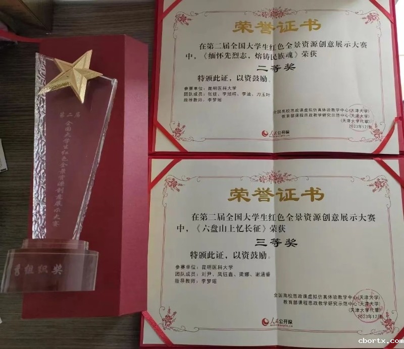 在校团委及马克思主义学院的帮助下社团先后荣获18luck备用登录2021年度、2022年度“五星级社团”荣誉。社团成员参与第二届全国大学生红色全景资源创意展示大赛,作品《缅怀先烈志 熔铸民族魂》获二等奖,作品《六盘山上忆长征》获三等奖,社团获优秀组织奖。