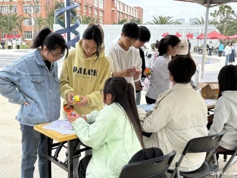 巧智问答、觅处寻宝,同学们在玩乐中欢畅运动,并赢得了丰厚礼品;蓝蝶围棋社与象棋社的帐篷里落满棋盘,棋手们在棋盘上沉稳博弈,没有下棋基础的参与者们则在一旁有序观战,学长学姐们把握教学契机为大家讲解,帮助零基础学员更好地掌握规则;魔方协会提供多式多样的魔方——三阶魔方、五魔方、镜面魔方……供同学们挑战复原;枫叶羽毛球协会的颠球挑战、定点击球挑战;乒乓球协会的水面吹乒乓球挑战;Scalpel skating轮滑协会的轮滑桩保龄球、“一二三,木头人”挑战……共同造就趣味横生、精彩纷呈的画面。
