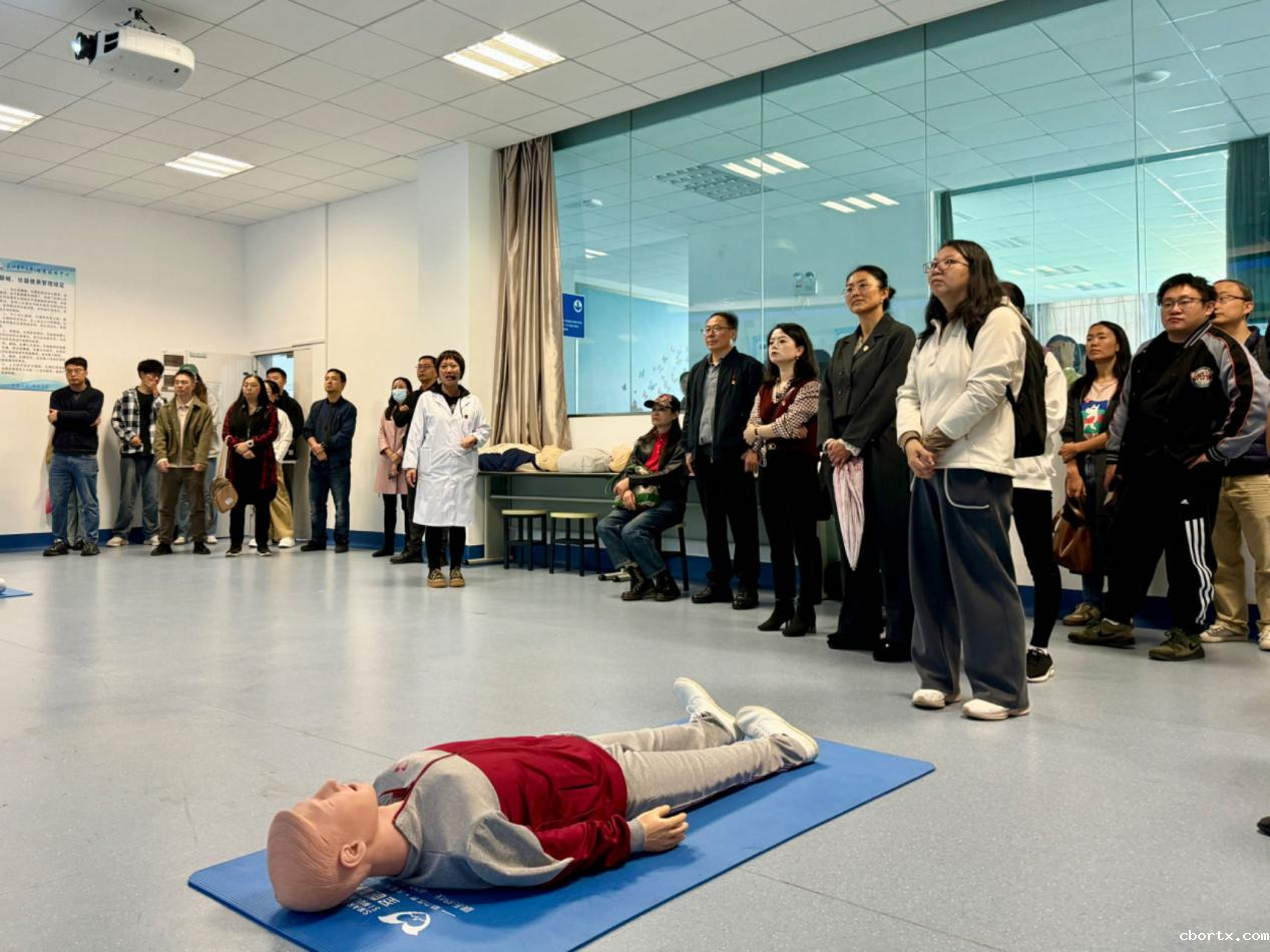 随后,中心讲师团向来宾讲解了成人心肺复苏术、AED使用、成人及儿童海姆立克急救法等内容,到访人员现场利用模型模具进行了实操训练。