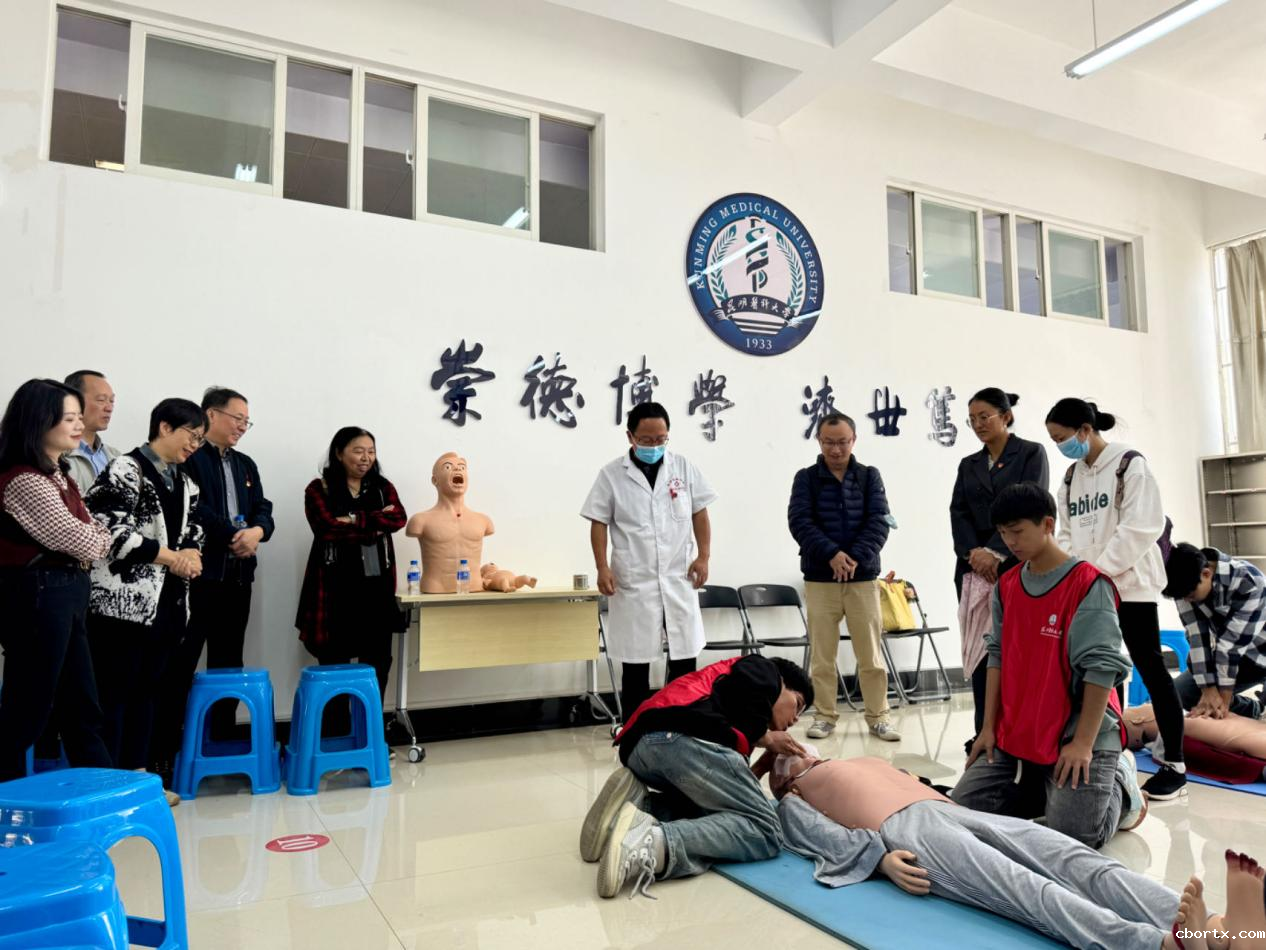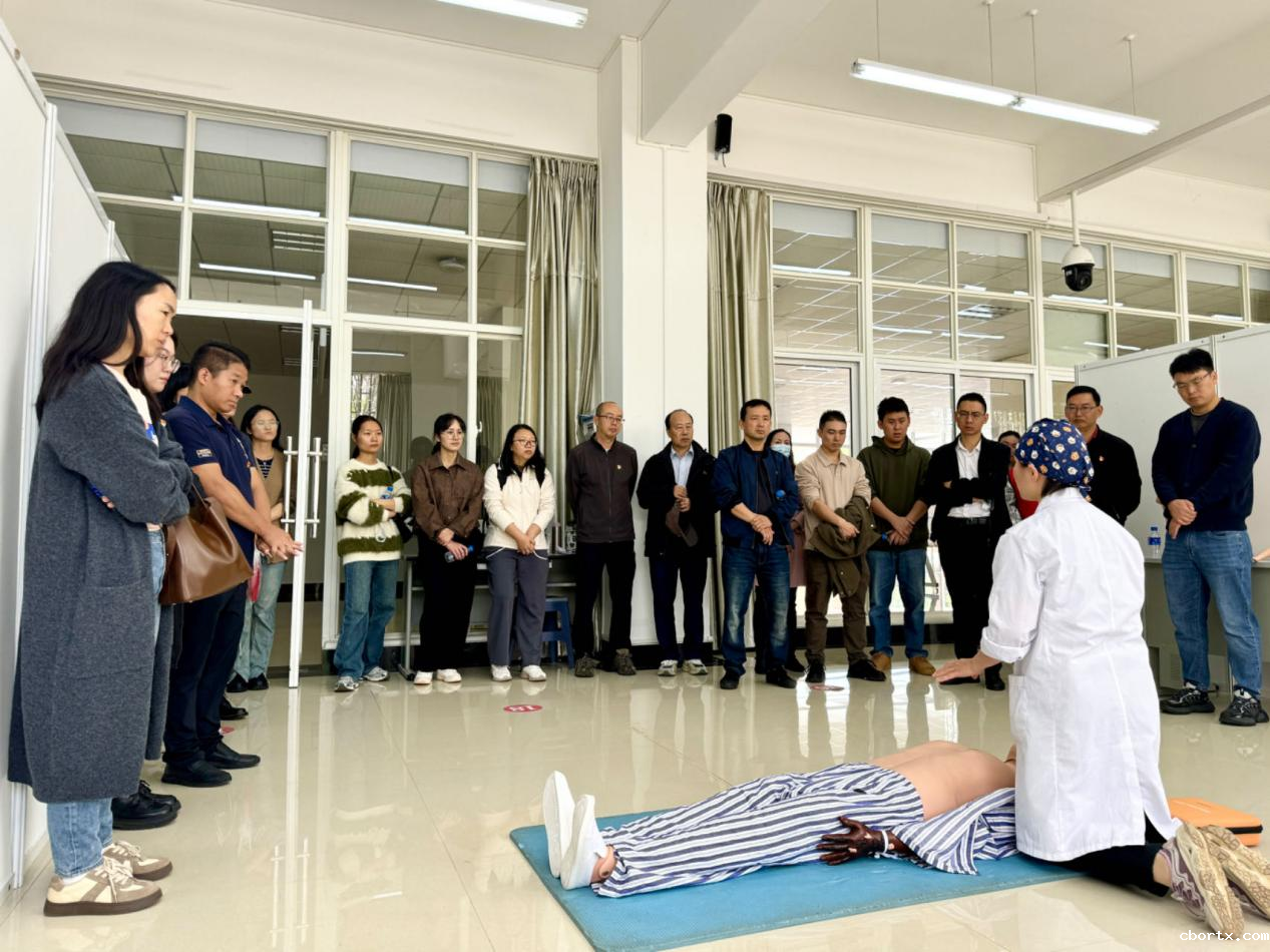 10月18日上午,云南省审计厅相关领导、学校财务处、审计处一行70余人到临床技能中心参观调研并参加急救培训。