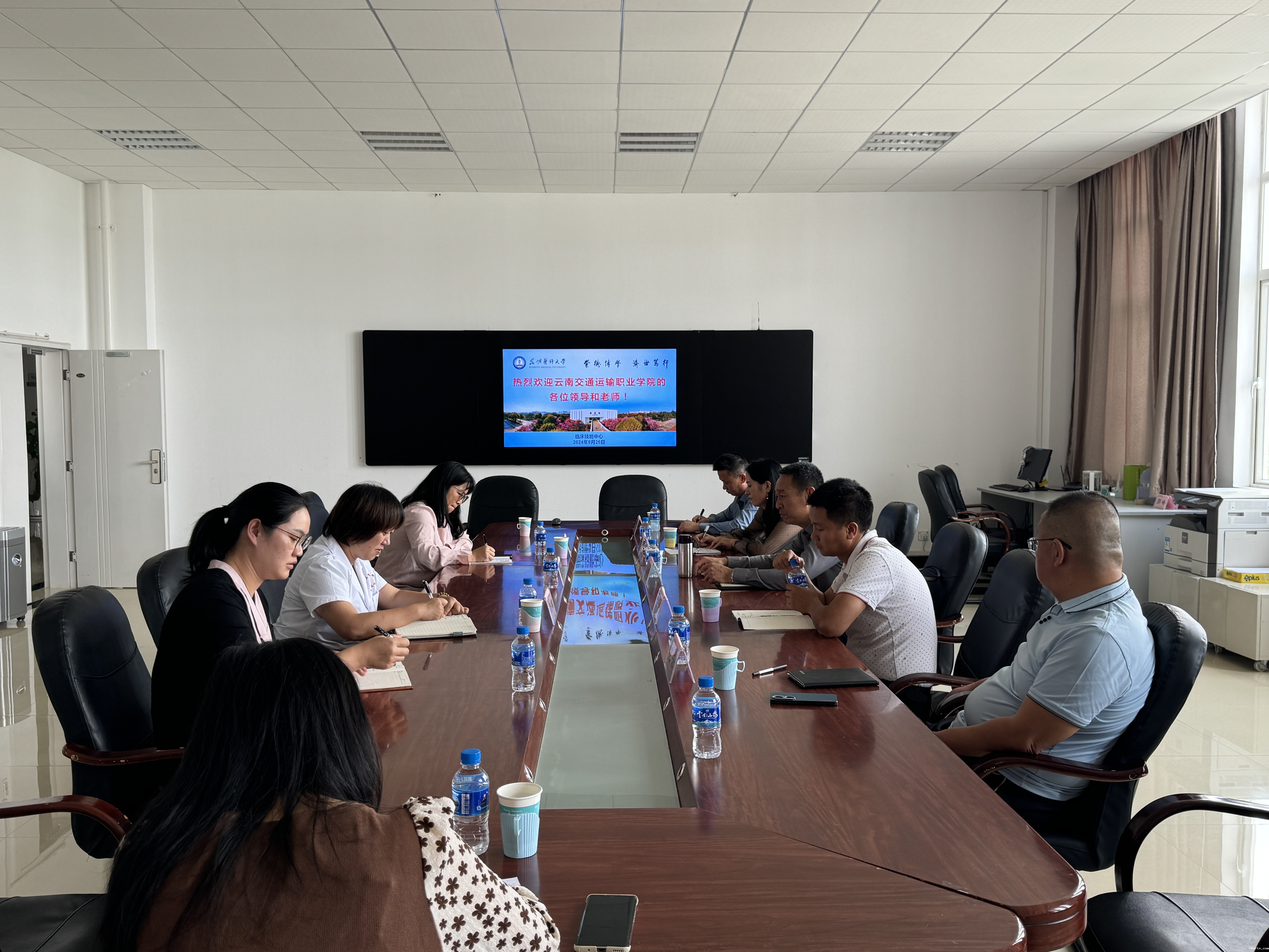 9月26日下午,云南交通运输职业学院从永明副校长一行6人至我校临床技能中心进行了一次旨在深化校际合作、促进教育资源共享的参观交流活动,直属单位党委刘卫华书记、严亚萍副书记、中心杨晖副主任和办公室人员一起进行了接待。