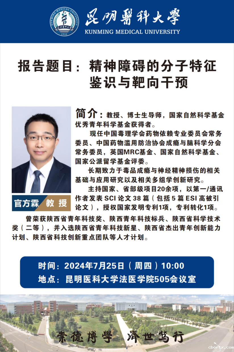 2024年7月25日上午,国家自然科学基金优秀青年科学基金获得者、西安交通大学法医学院官方霖教授到国家卫健委毒品依赖和戒治重点实验室进行学术交流。18luck备用登录法医学院院长、重点实验室副主任洪仕君教授,科技处副处长张瑞林副教授,法医学院副院长曾晓锋教授,重点实验室科研骨干和法医学院师生参加会议。