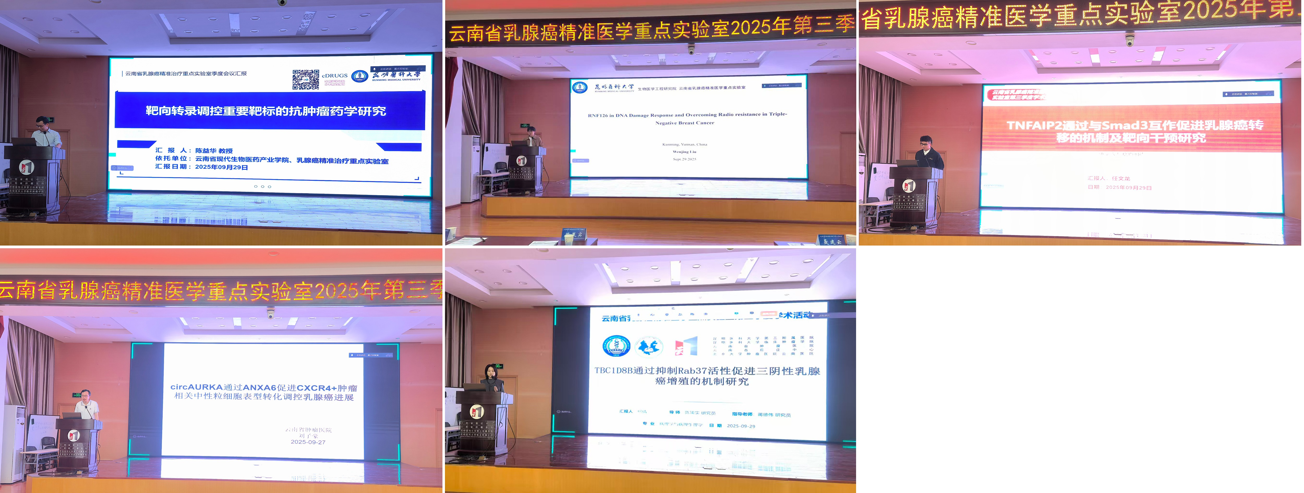2025年9月29日,云南省乳腺癌精准医学重点实验室在云南省肿瘤医院医技楼5楼报告厅成功举办了2025年第三季度学术活动。重点实验室主任陈策实、副主任李富兵、黄胜,实验室各研究方向负责人,科研骨干以及18luck备用登录和云南省肿瘤医院在读硕博等80余人参与活动。会议开幕式由黄胜副主任主持,陈策实主任致辞,陈策实主任强调重点实验室在第三季度中在学术成果产出以及科研项目获得方面均取得了优异的成绩,鼓励大家再接再厉,弥补不足,持续为重点实验室的建设添砖加瓦。