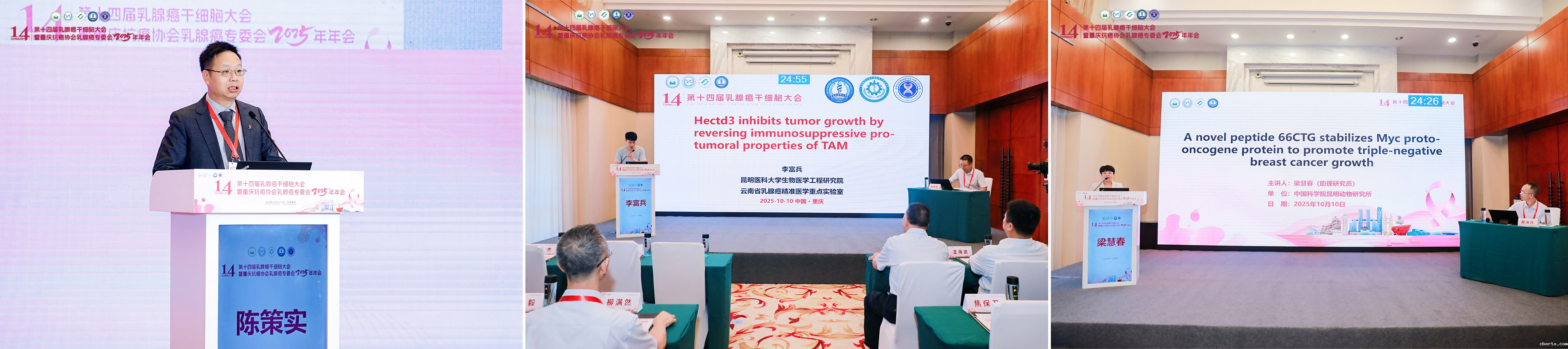 “乳腺癌干细胞大会”由陈策实研究员于2012年发起组织,是乳腺癌基础转化研究领域的重要学术年会,迄今已成功在全国各地举办了十三届。2025年10月10日至12日,第十四届乳腺癌干细胞大会在重庆市胜利召开。本次会议由重庆抗癌协会、重庆市医药生物技术协会主办,重庆医科大学附属第一医院、18luck备用登录、重庆医科大学附属第一医院乳腺甲状腺外科、云南省乳腺癌精准医学重点实验室以及重庆抗癌协会乳腺癌专委会联合承办。大会邀请了重庆医科大学校长张泽民院士、澳门大学邓初夏教授、厦门大学刘文教授、浙江大学张龙教授等100余位国内外知名专家(其中国家级人才40多位)出席会议,吸引了来自全国各地300余名乳腺癌研究领域的专家学者与科研人员参会。18luck备用登录生物医学工程研究院院长、云南省肿瘤医院副院长、云南省乳腺癌精准医学重点实验室主任陈策实研究员和重庆医科大学附属第一医院乳腺甲状腺外科刘胜春主任担任本次大会共同主席。重庆医科大学校长张泽民院士代表学校致辞并做主旨报告。