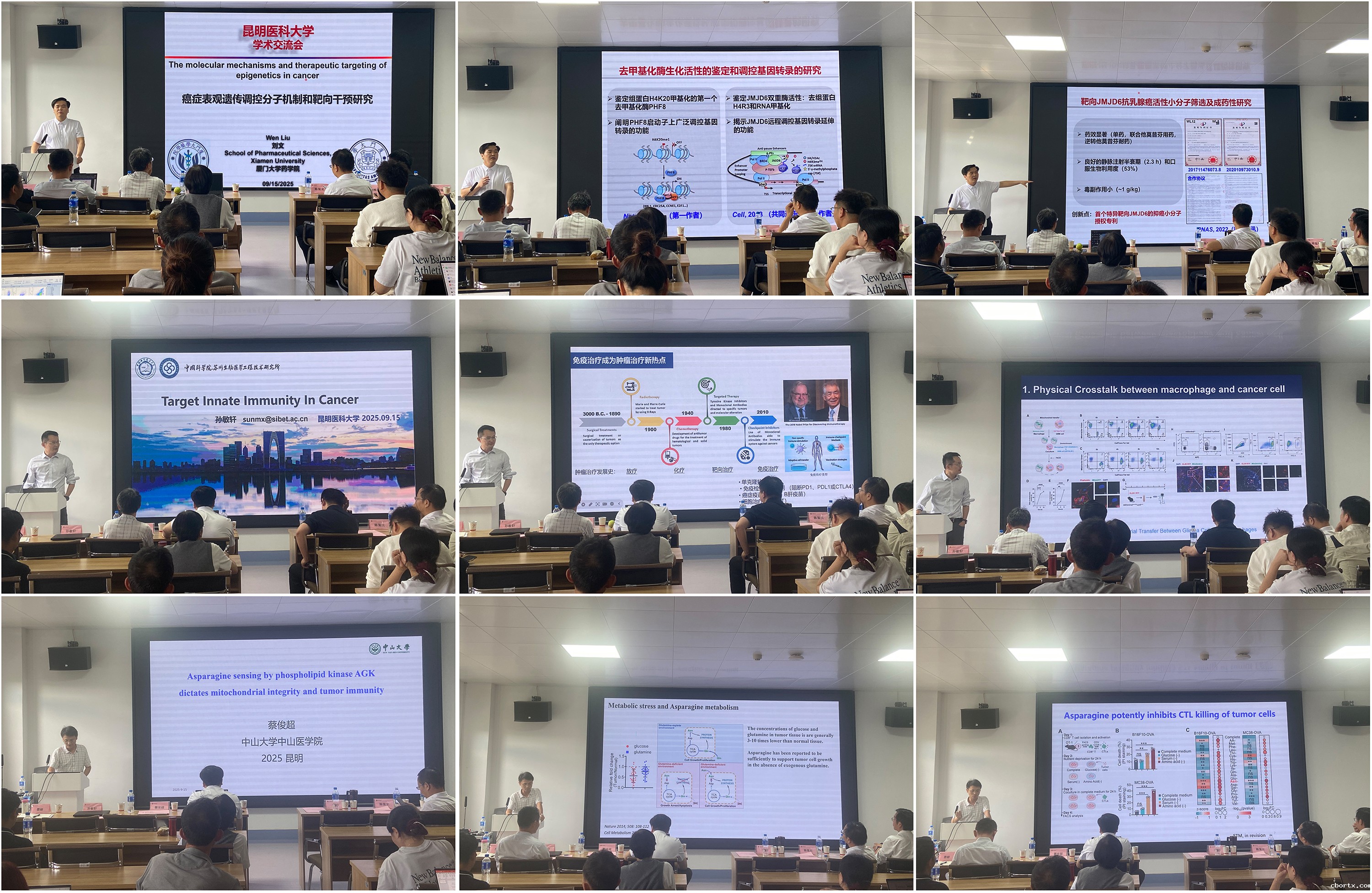 2025年9月15日,18luck备用登录生物医学工程研究院暨云南省乳腺癌精准医学重点实验室举办了一场主题为“肿瘤表观遗传与免疫”的学术讲座。讲座特别邀请了重点实验室学术委员会委员、厦门大学药学院院长刘文教授,中国科学院苏州医工所孙敏轩教授,以及中山大学中山医学院蔡俊超教授,为广大师生带来最新科研成果与学术分享。生物医学工程研究院陈策实院长,晏姗和陈亚娟副院长,18luck备用登录产业学院陈益华副院长,以及研究院师生共60余人参加了此次讲座。