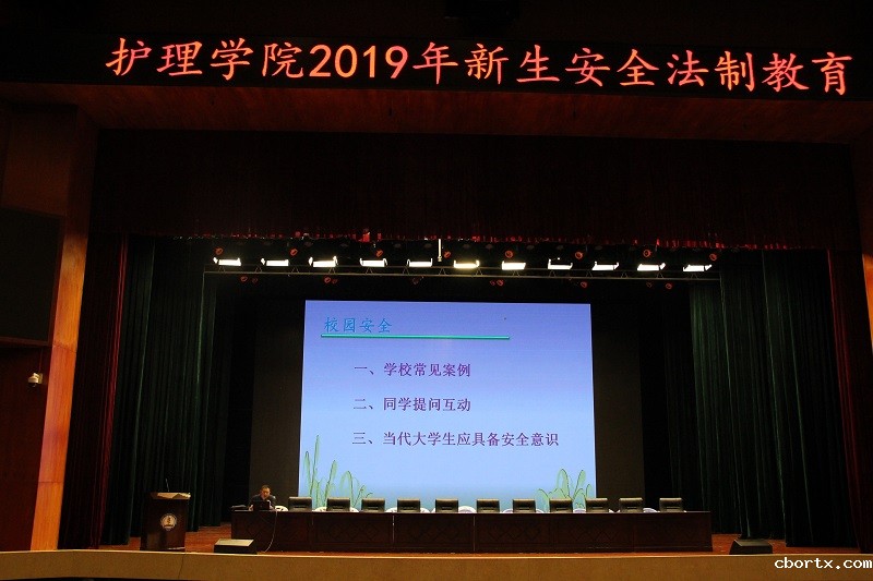 典礼结束后,保卫处何兴国老师给新同学们上了一堂生动的安全法制教育课。 孙选平副书记就学生日常管理教育等内容和新生们进行了交流。卢玉林副院长为新生详细讲解了自主选择课程、本科生导师制等改革要点,为2019级新生进行学分制改革宣传动员。