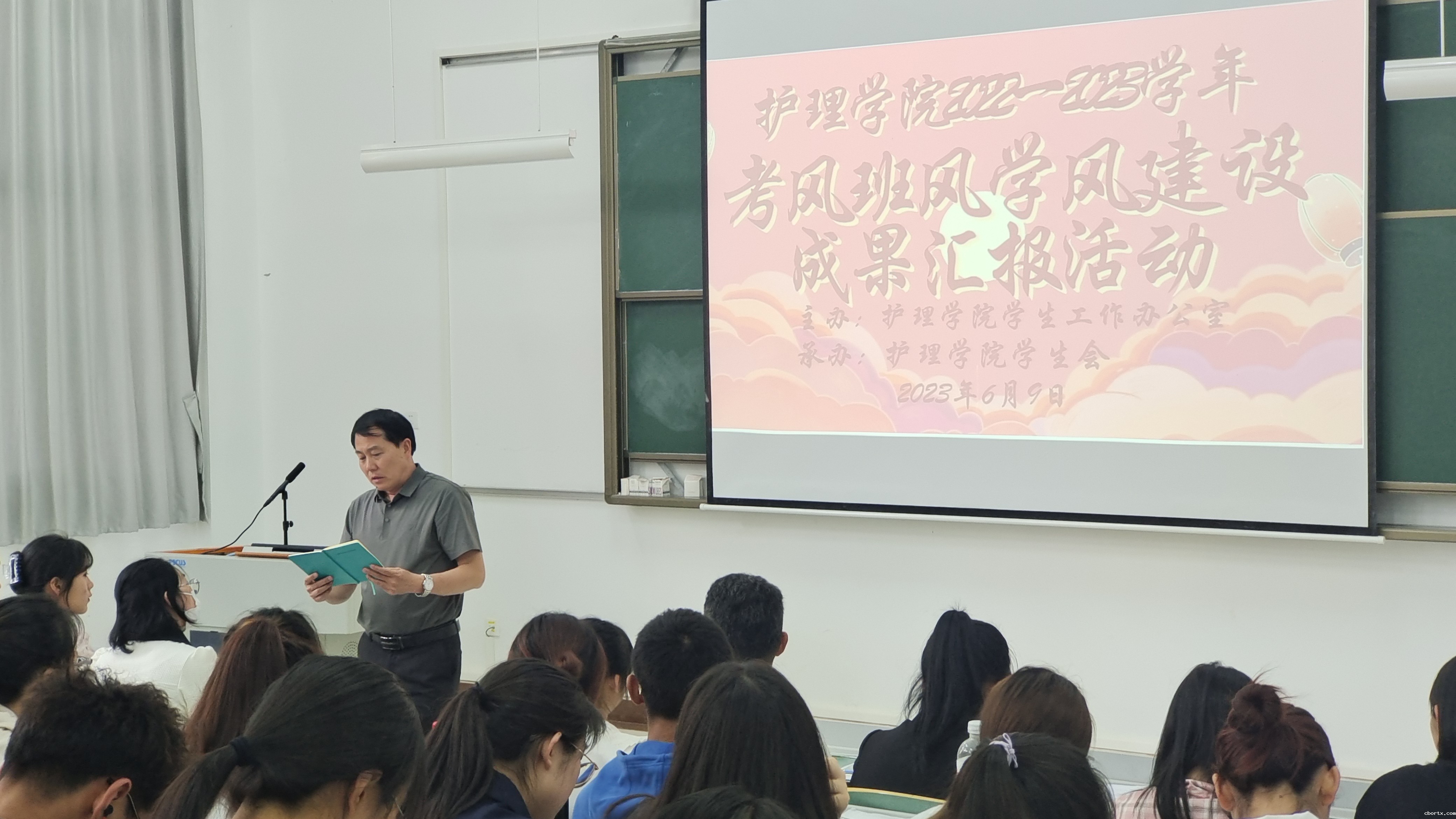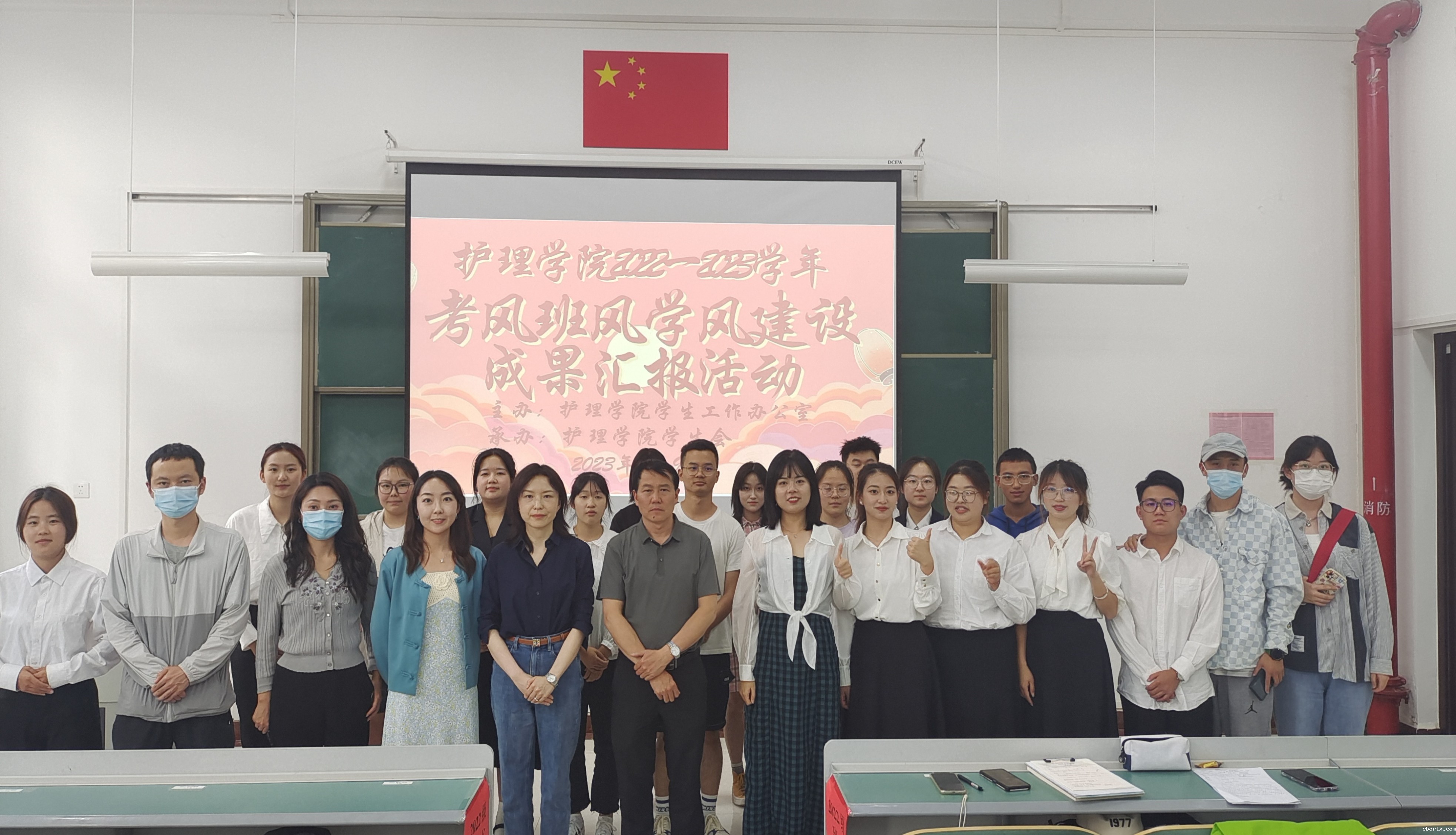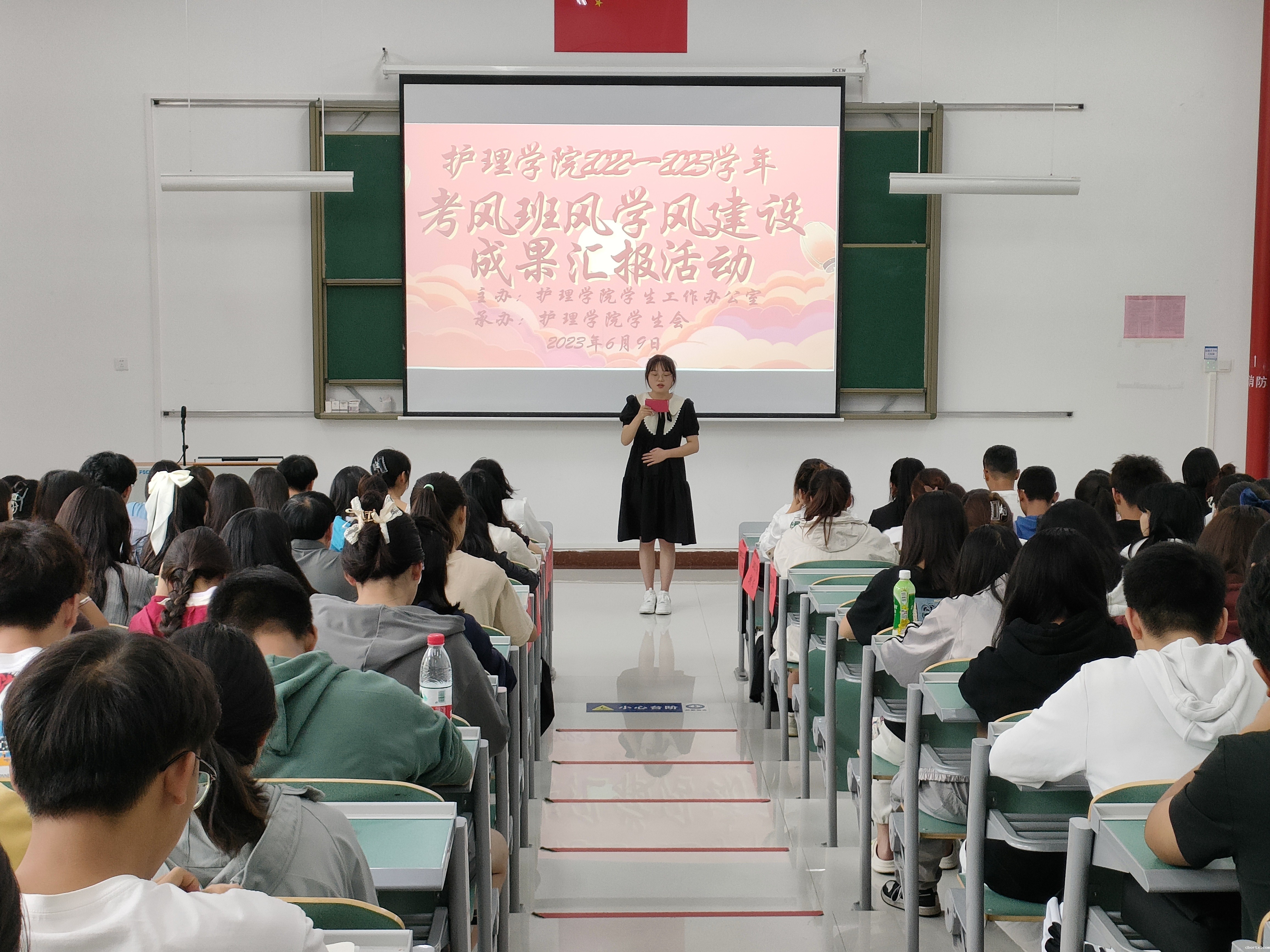 2023年6月9日下午,护理学院在呈贡校区开展了“2022—2023学年考风班风学风建设”成果汇报活动。此项活动是护理学院为进一步落实立德树人根本任务,把学习贯彻习近平新时代中国特色社会主义思想主题教育走深走实,坚持问题导向,以学生为中心,切实解决考风班风学风建设中存在的突出问题,激发学生内生动力,端正学习态度,明确学习目的,营造积极、上进、团结、友爱的班级氛围,不断提高人才培养质量,在全体非实习班级中开展的以“一降、二升、三强化、四达标、五并举”为目标的树考风、正班风、促学风班级建设主题系列活动之一(主题系列活动时间为2022年10月至2023年6月)。