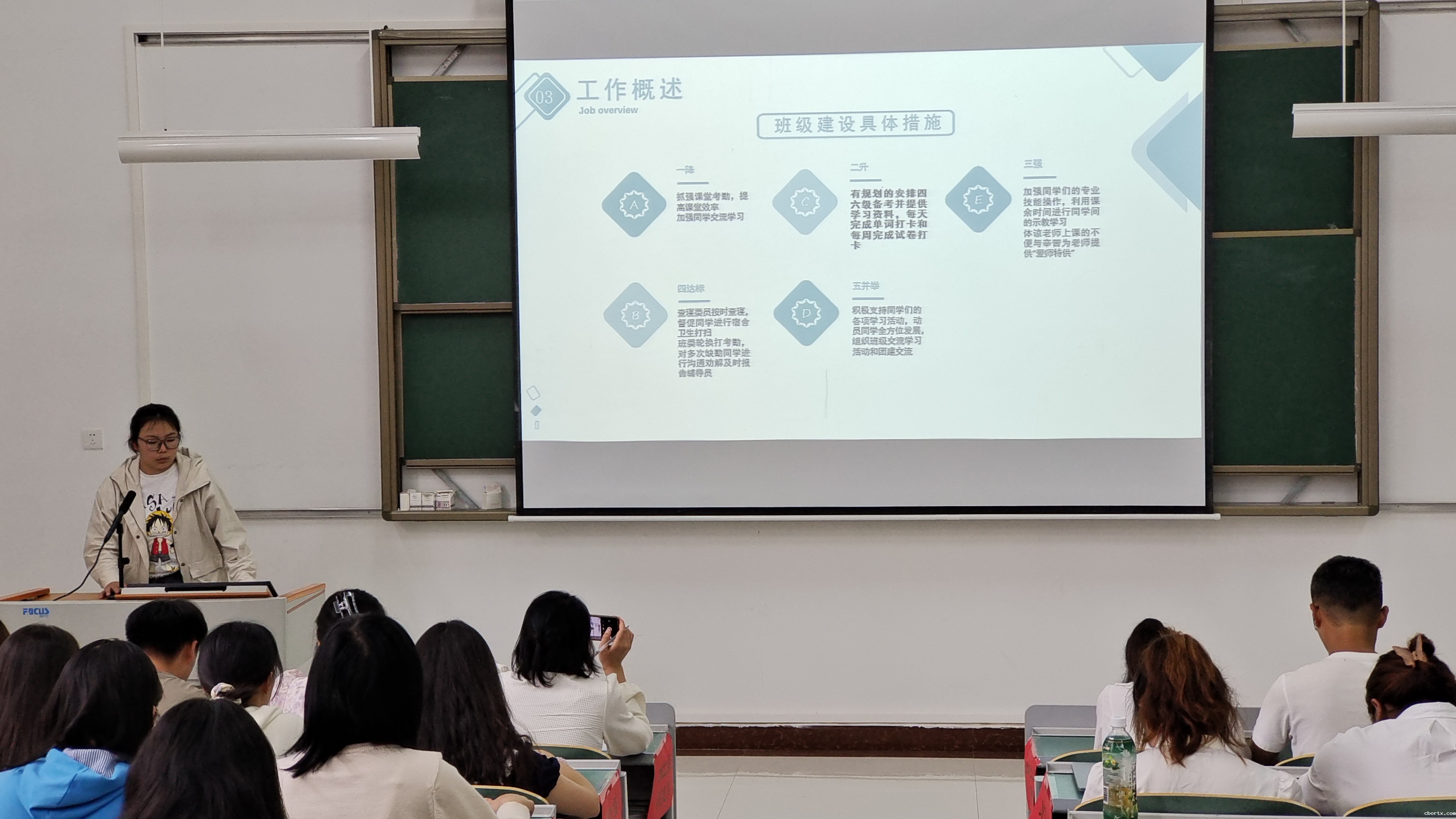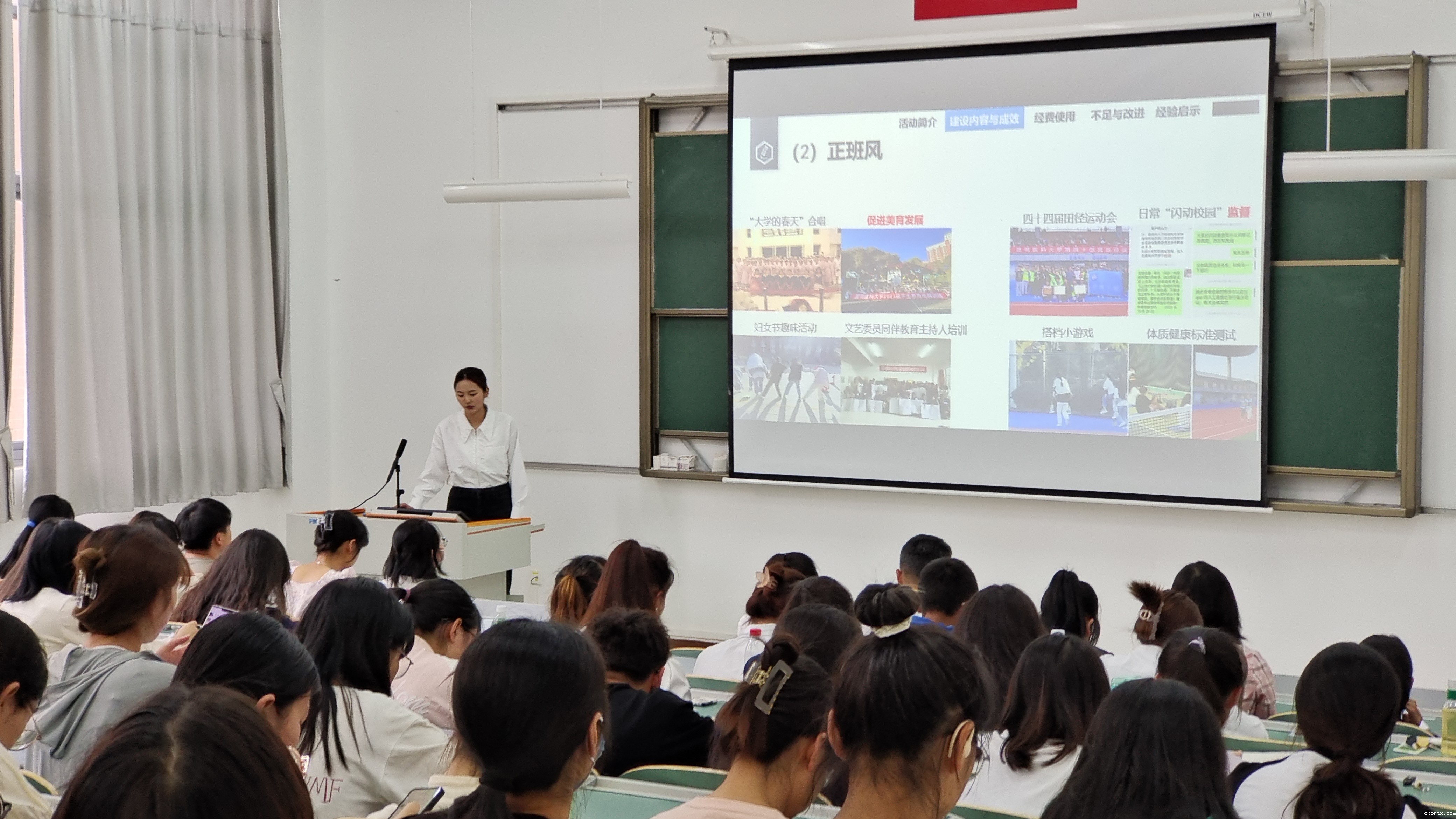 成果汇报活动由班长作为班级代表就2022—2023学年班级建设情况进行主题鲜明、内容详实的现场汇报,内容包括班级建设目的意义、主要做法、实际成效、经验启示、经费使用等。
