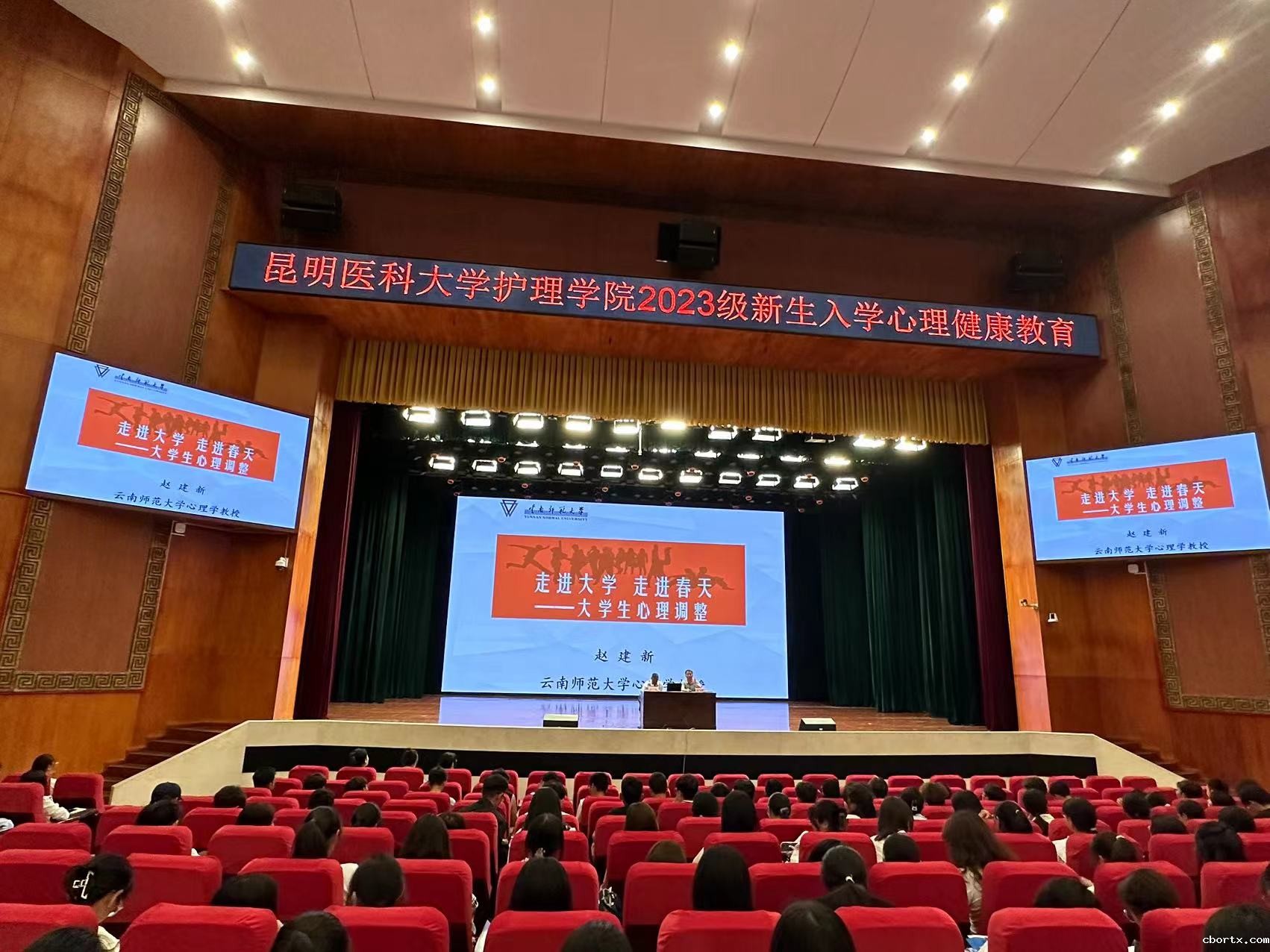 2023年9月26日,护理学院在学生会堂举行2023级新生入学教育,邀请云南省著名心理学专家赵建新教授为新生讲授大学生心理问题与调整。此次教育由学院党委副书记聂兆祥主持,辅导员老师及护理学院2023级全体新生和各班心理委员到场参加。
