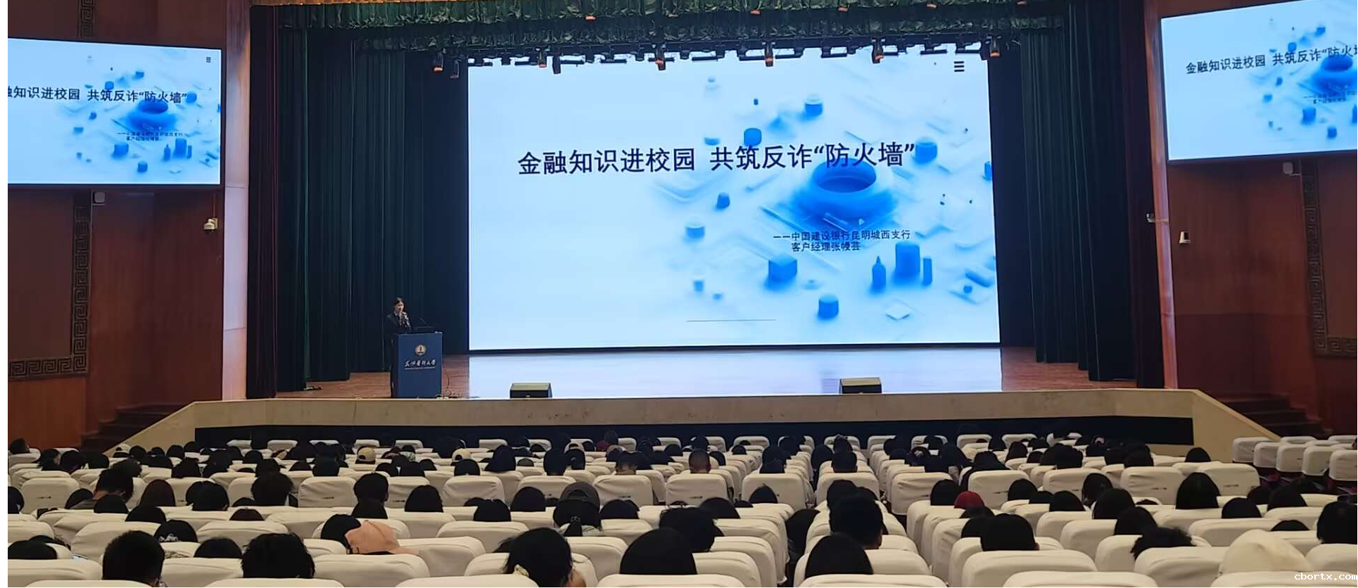 讲座分两个阶段进行,第一阶段邀请中国建设银行工作人员以“金融知识进校园,共筑反诈防火墙”为主题,为同学们带来了一场生动实用的金融安全讲座,内容涵盖防范电信诈骗、保护个人财产安全等,增强了同学们的金融风险防范意识。