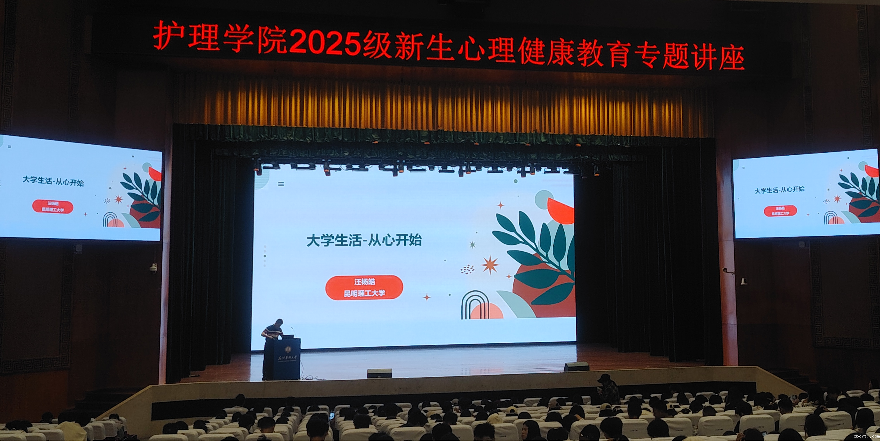 第二阶段为“新生心理健康教育专题讲座”,由昆明理工大学心理健康教育专家汪杨皓主讲,他围绕适应大学生活、情绪管理与压力应对等内容展开,帮助同学们掌握心理调适的方法,以积极健康的心态迎接大学阶段的各项挑战。