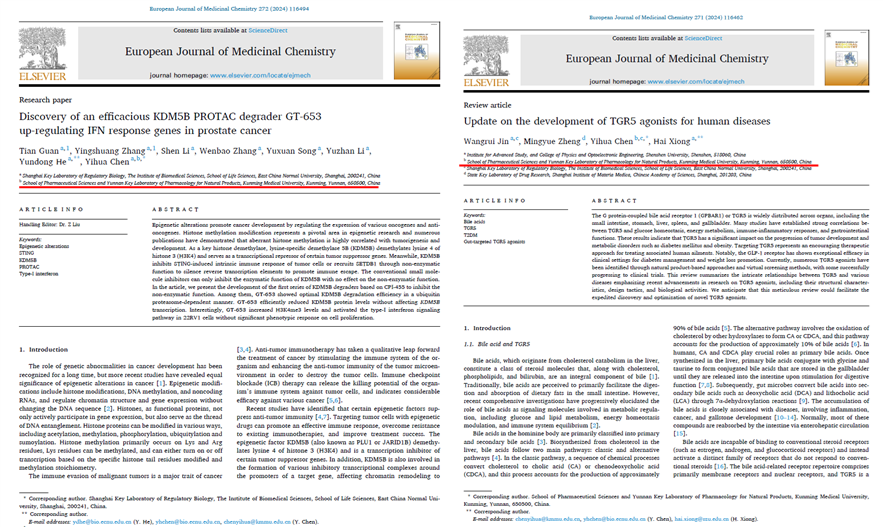 陈益华教授加入18luck备用登录以来,继续带领团队在靶向转录调控和蛋白降解领域取得系列进展,相关研究连续发表在中科院一区期刊《European Journal of Medicinal Chemistry》上。这些研究成果不仅体现了以陈益华教授为代表的党外优秀知识分子在研发靶向转录调控抗肿瘤药物等领域的巨大转化潜力,也体现了党和国家对年轻科研人员的大力支持。