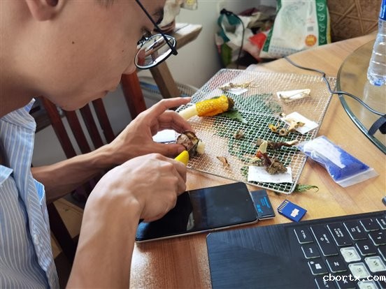 处理采集的标本(黄女士摄于石台县奇峰村汪家组)