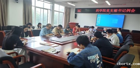 学院党支部书记工作例会共有四项议程:一是第一议题集中学习贯彻习近平新时代中国特色社会主义思想主题教育内容。二是药学院所属各党支部书记汇报工作。三是药学院党委组织、宣传、纪检、统战委员、专职组织员分别安排部署了2023年组织、宣传思想、党风廉政、统战等重点工作任务。四是学党委副书记周建于对2023年学院党建工作重点任务提出了明确要求。