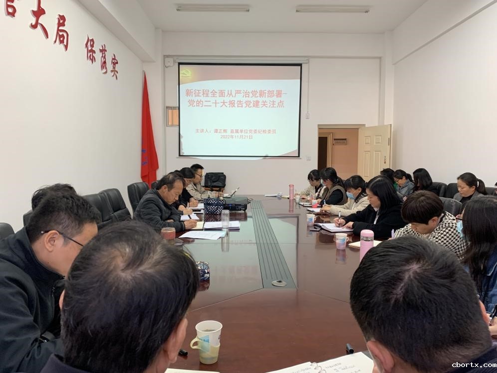 第一议题是党风廉政专题学习。直属单位党委纪检委员谭正辉领学了“新征程全面从严治党新部署党的二十大报告党建关注点”。党的二十大报告在第一、三部分系统总结了全面从严治党和党的全面领导的成功经验,分析了十年前存在的突出矛盾和问题以及目前依然存在的不足和困难,第十五部分全面系统阐述了深化全面从严治党新的战略部署。在总结党的建设经验上有新提法、在剖析问题上有新发现、在战略部署上有新要求,亮点不少。