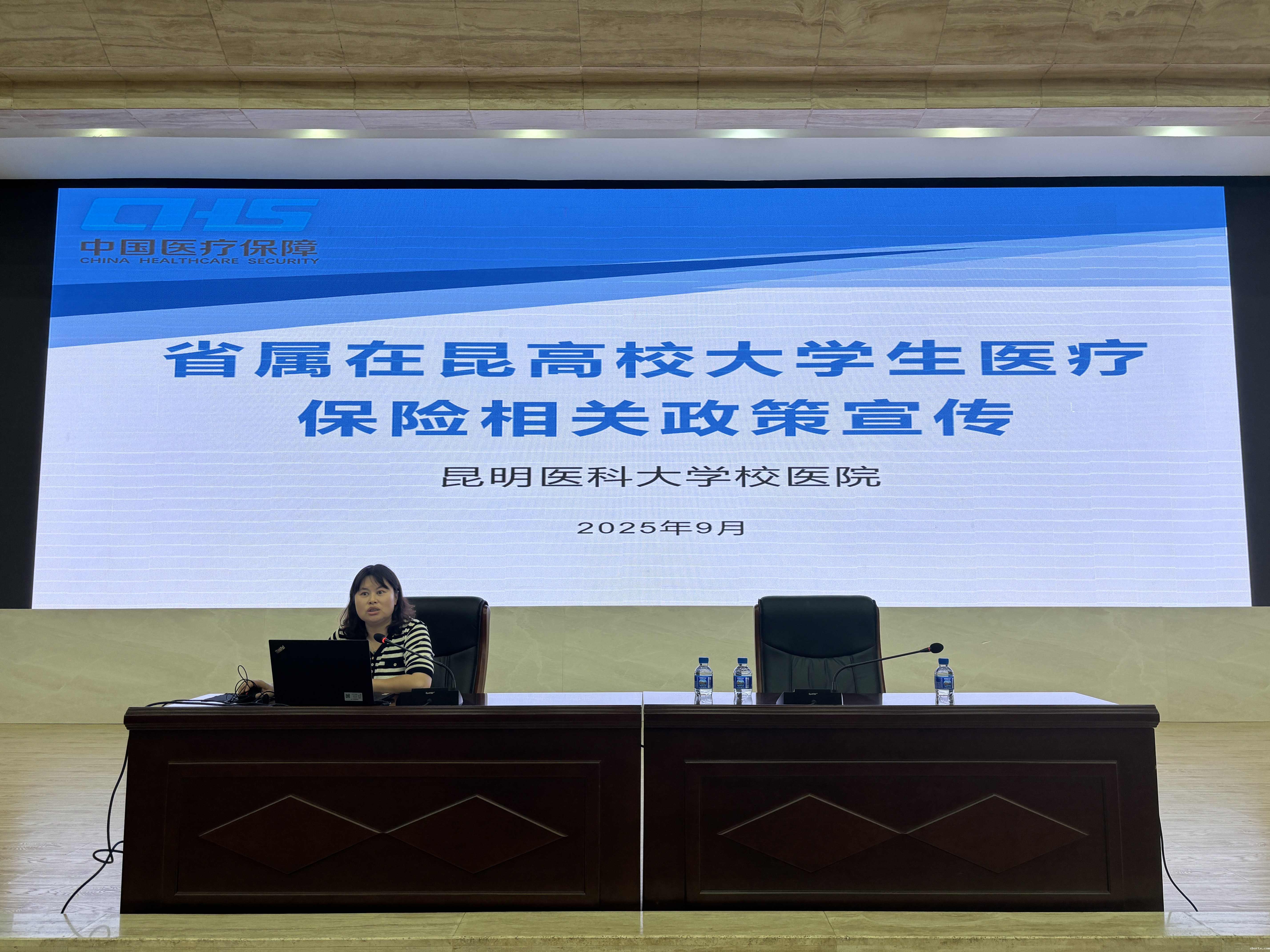为提升2025级新生对医保政策的认识,增强学生参保意识,切实保障学生的医疗权益,9月16日,校医院在呈贡校区学术交流中心第一报告厅开展大学生医保政策宣讲活动,共计149名班委及辅导员参会。