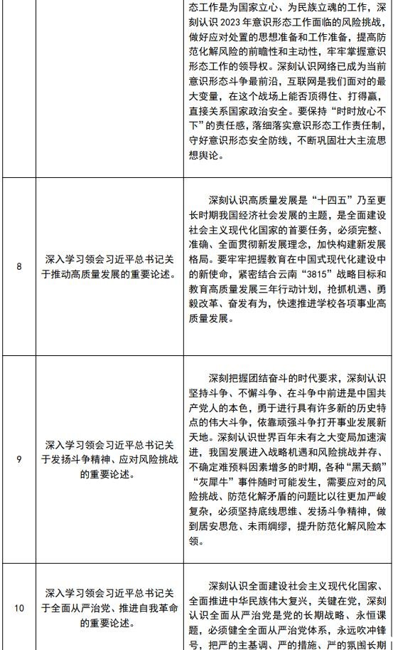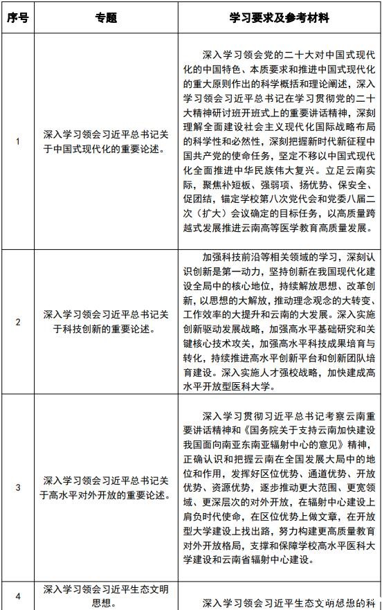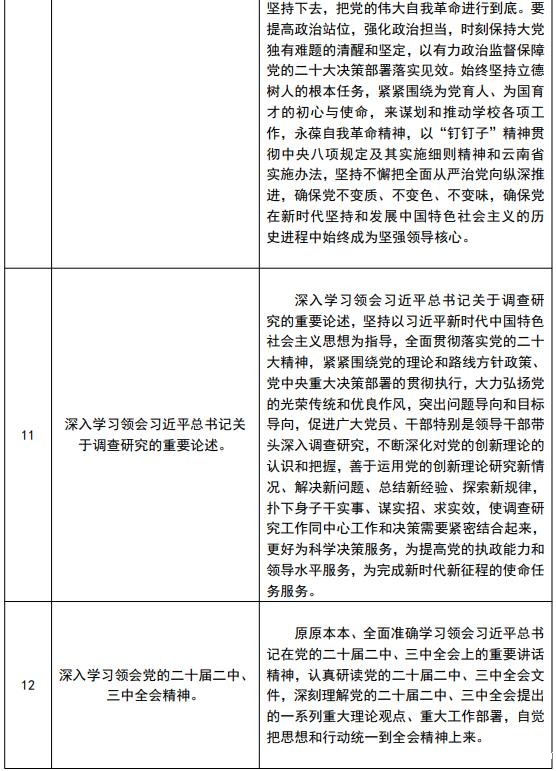 2023年是全面贯彻落实党的二十大精神的开局之年,推进理论武装、加强师生政治理论学习至关重要。为深入学习贯彻习近平新时代中国特色社会主义思想和习近平总书记考察云南重要讲话和重要指示批示精神,贯彻落实《中共云南省委办公厅关于印发〈省委理论学习中心组2023年学习选题计划〉的通知》及《18luck备用登录2023年校院两级党委理论学习中心组学习计划暨学习型党组织学习安排意见》(新利全站APP的最新版本更新方法大党宣字〔2023〕2号)要求,结合直属单位党委实际,现就2023年直属单位党委学习型党组织建设工作安排如下: