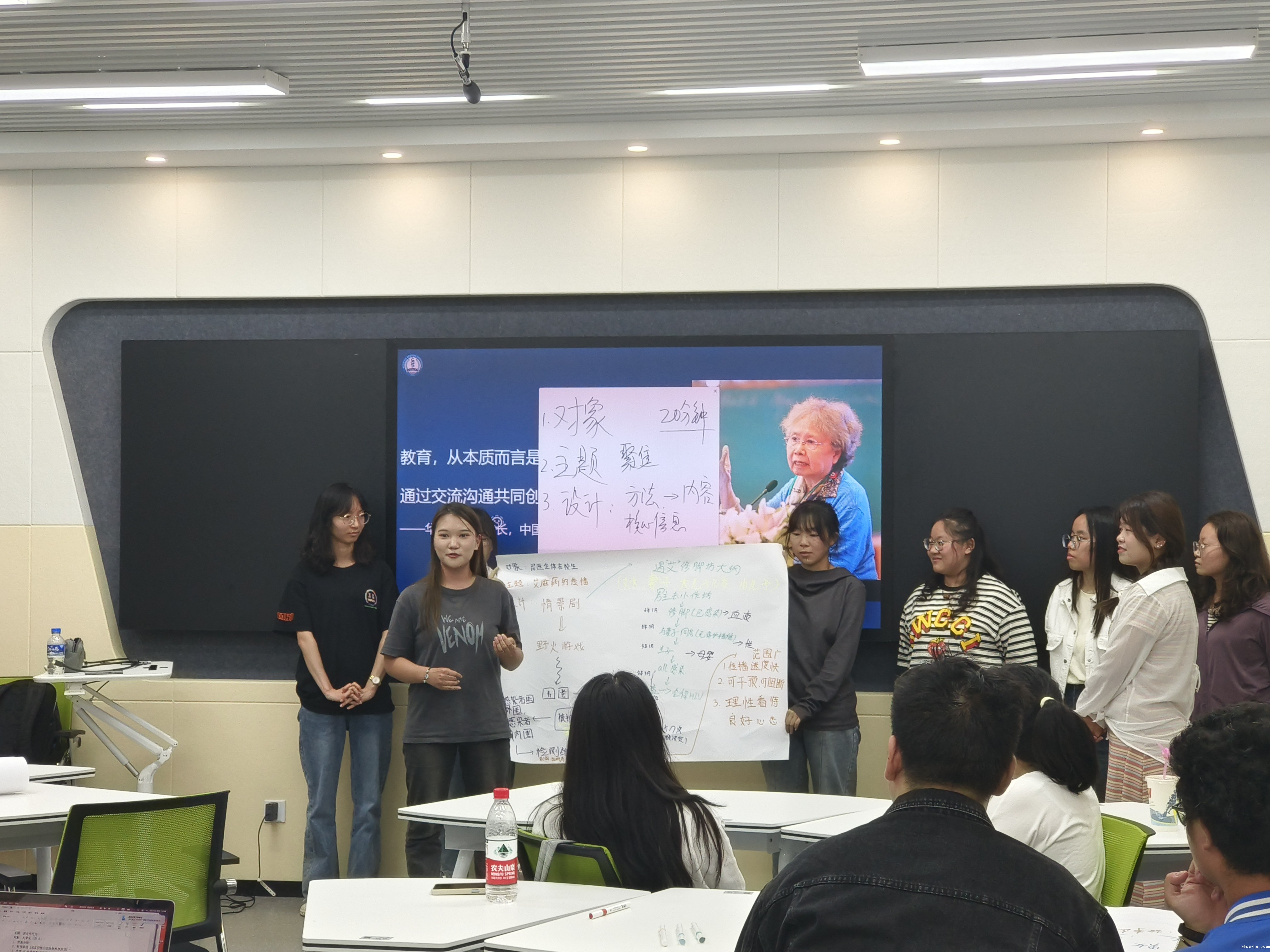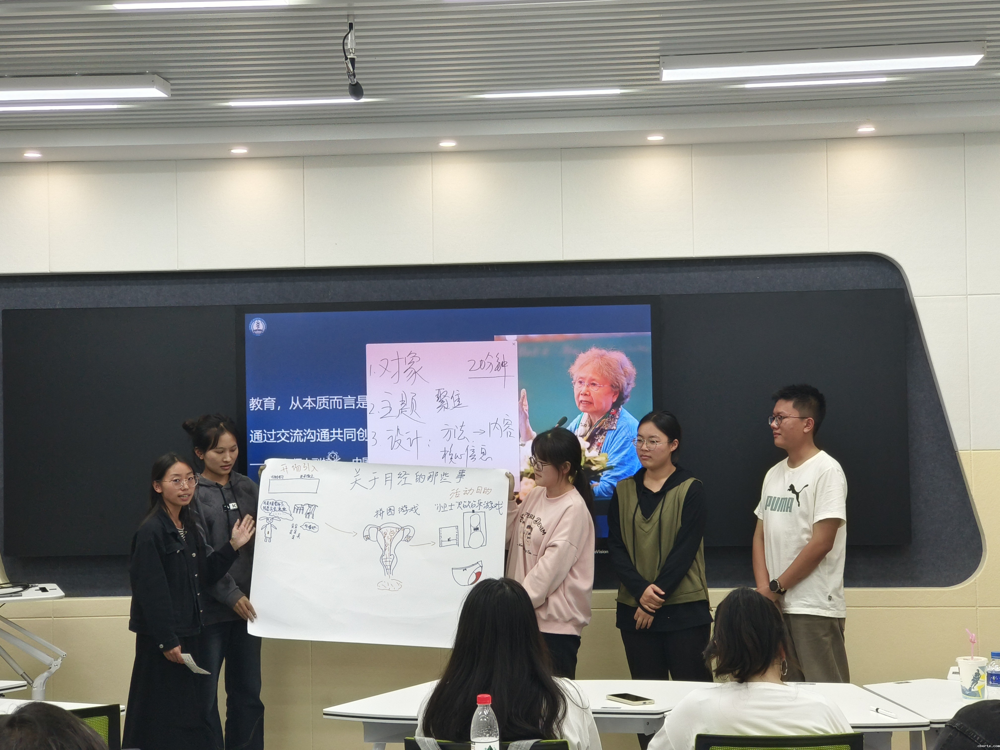 焦锋从传统教育的反思、参与性健康传播、如何上好一堂健康课三个方面讲授了开展青春健康同伴教育的方法和技巧。他的讲授生动具体,案例丰富,形式新颖,感染力和实用性很强。理论讲授后分组进行实操。大学生志愿者迅速用培训知识设计了健康教育活动进行了小组展示,焦锋老师对每组的活动进行了即时点评,肯定了同学们的创意,提出了调整方向和修改建议,鼓励同学们完善作品参加科普作品大赛。