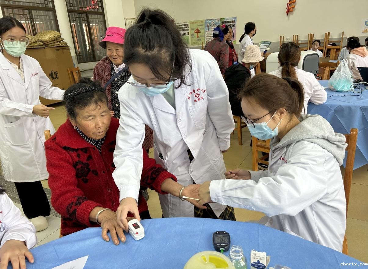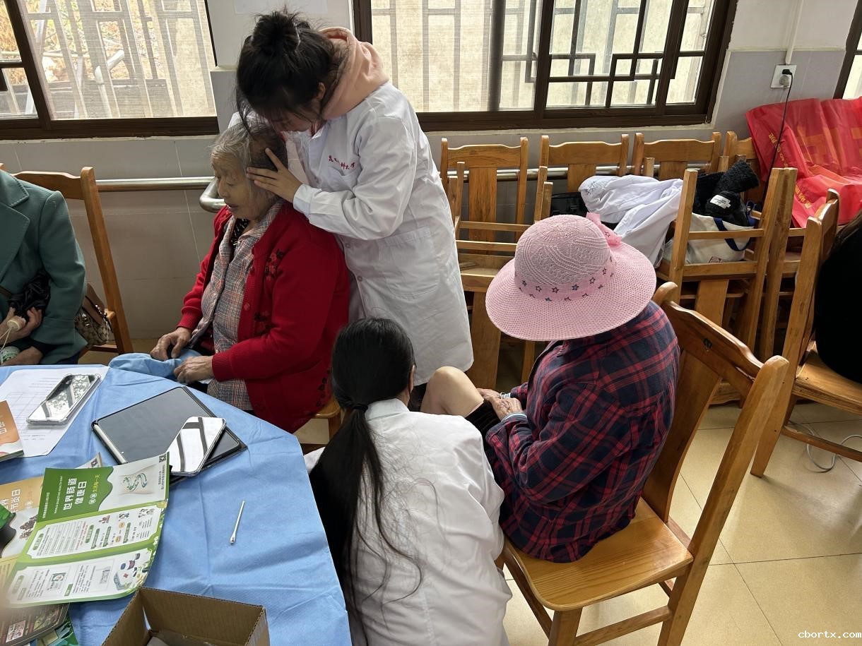 一支服务队由校医院医生14人和康复学院学生6人组成,为社区老年居民提供了慢病管理、用药咨询、康复治疗、眼科普查、血压、血糖及血氧饱和度检测等服务。通过对社区老年居民进行一对一的专业指导,向居民普及常见疾病的预防与治疗方法,帮助社区居民了解和预防疾病,提高健康意识及水平。康复专科医生、治疗师针对老年人群特点进行了心脏康复、听力康复、神经肌骨康复、疼痛等方面详细的讲解和专业指导,并现场为社区居民进行简单实用的康复训练。