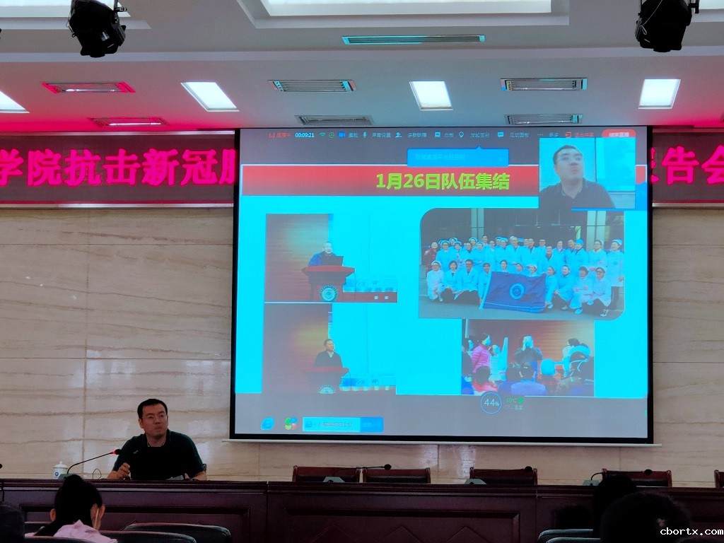 董昭兴主任为师生讲述了在湖北抗击新冠肺炎疫情的事迹,“2020年1月23日,我们接到援助湖北的消息,根本没什么准备,就简单收拾一下,带着医院给的90个N95踏上了抗疫之路。”面对突如其来的疫情,医护人员冲锋在前,他们用实际行动诠释了“大医精诚”。