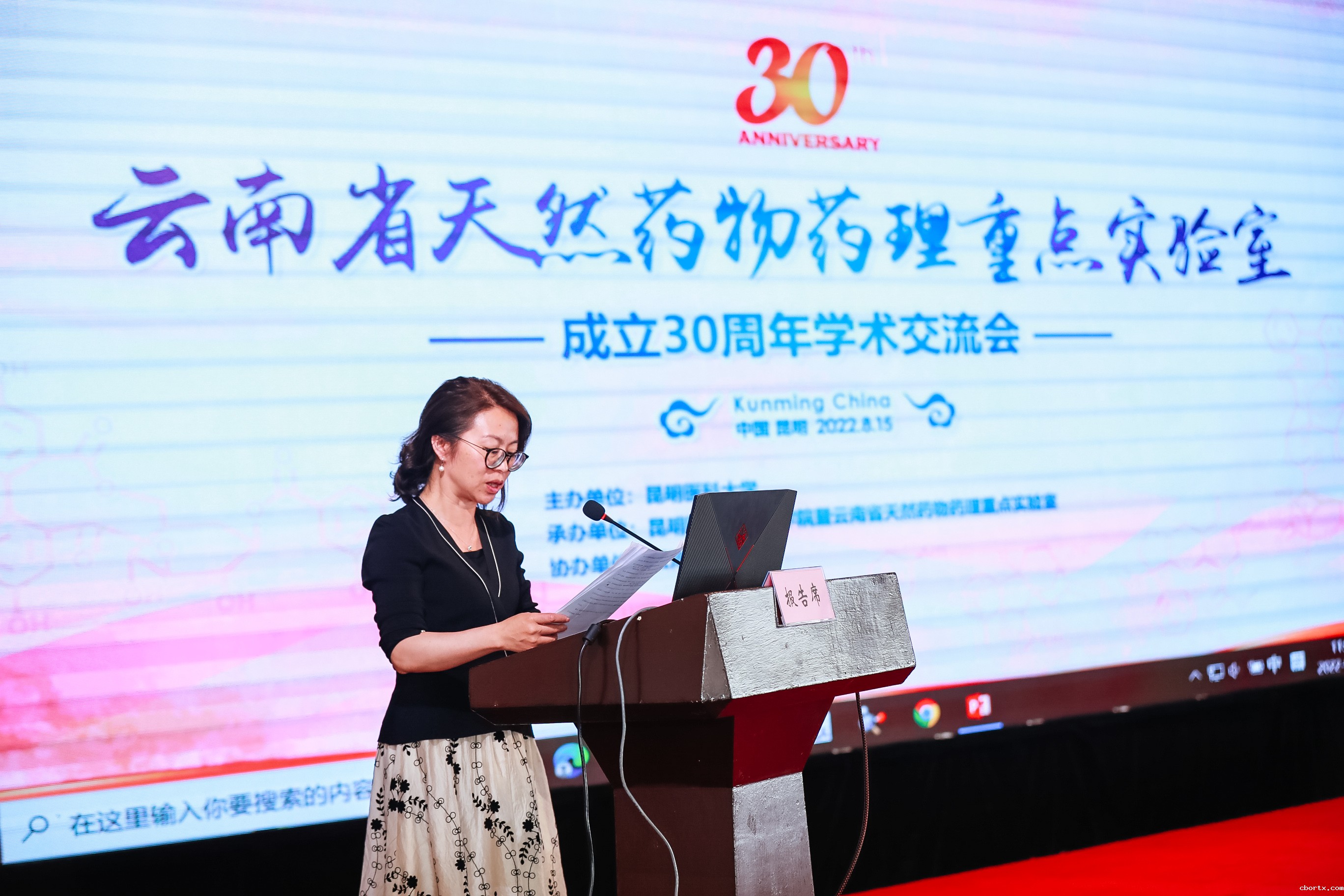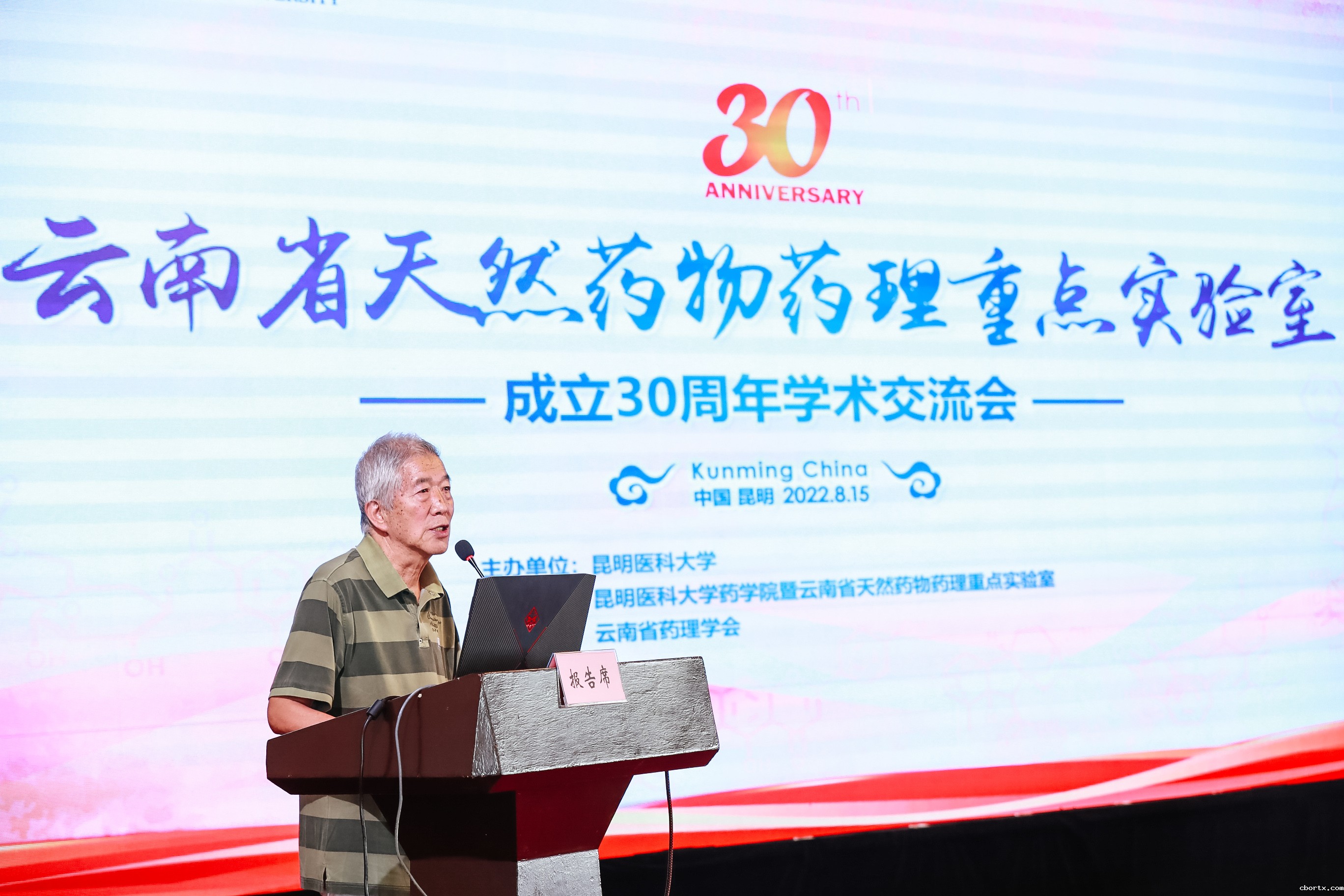 2022年8月15日上午,云南省天然药物药理重点实验室成立三十周年学术交流会在昆明滇池温泉花园国际大酒店成功举办。中国科学院上海药物研究所研究员、中国工程院丁健院士,中国科学院昆明植物研究所研究员、中国科学院郝小江院士,教育部高等学校药学类专业教学指导委员会主任委员、中国药科大学副校长姚文兵教授,云南省科技厅二级巡视员张继红,18luck备用登录党委书记尹向阳、校长李松、副校长张爱云、副校长李利华,药学院暨云南省天然药物药理重点实验室党委书记张有福、副院长(主持工作)李璠、副院长王伟出席了开幕式。开幕式由张有福主持,张继红巡视员和尹向阳书记发表了致辞。