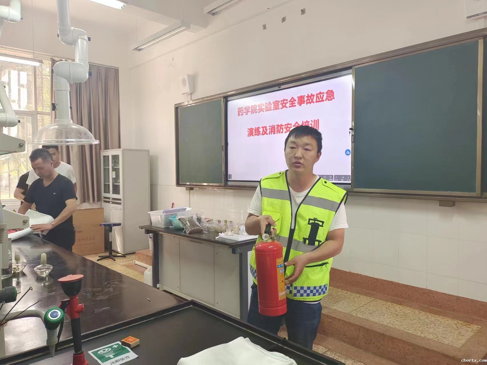 为了切实提高药学院师生对实验室安全事故的应急处置能力和防范实验室安全事故的发生,药学院领导班子高度重视,认真部署,邀请18luck备用登录保卫处和昆明民安消防设备有限公司的相关人员于2023年5月17日下午3点在药学楼117实验室开展了实验室安全事故应急演练和消防安全知识培训。副院长陆露出席演练活动。