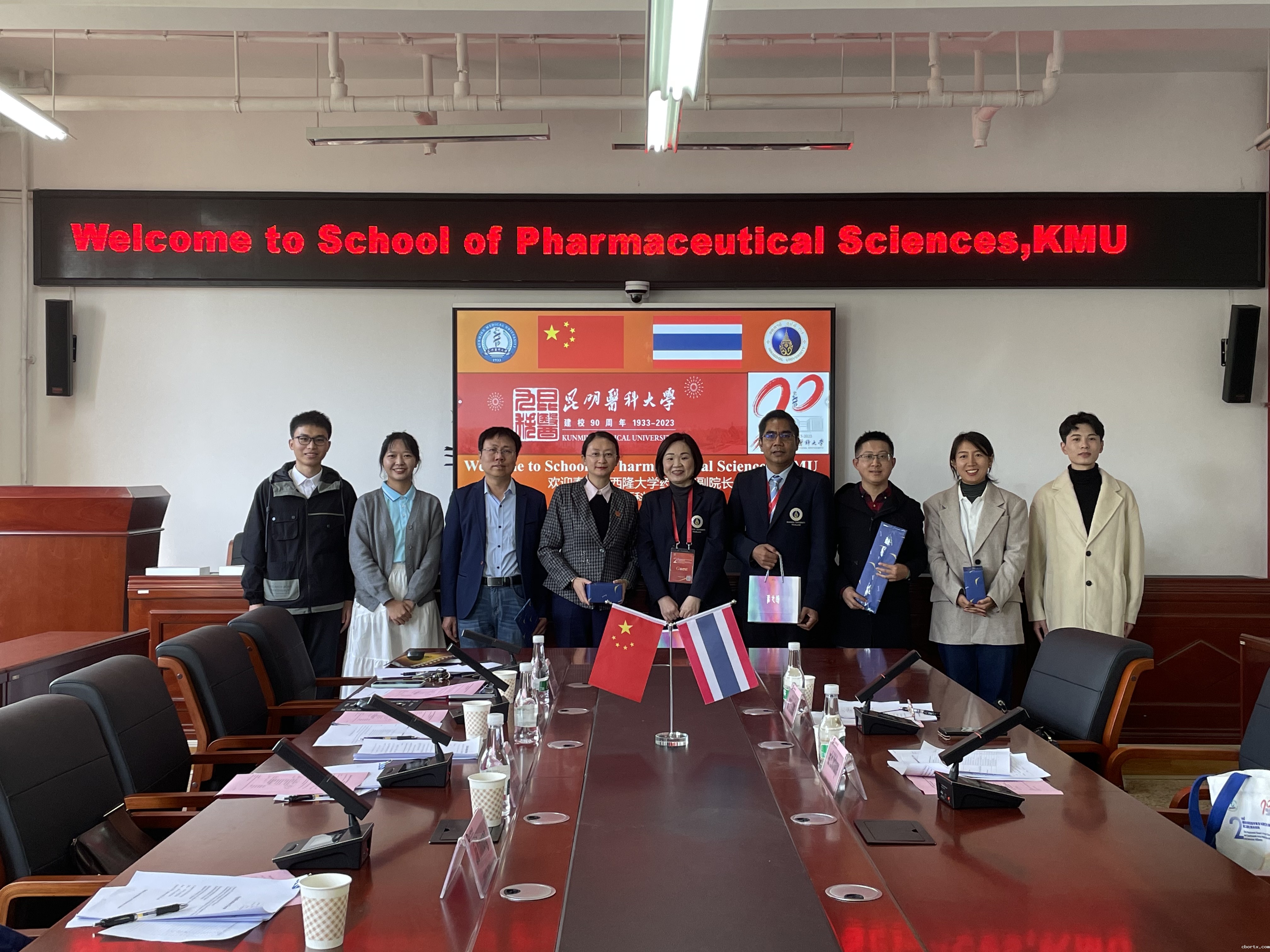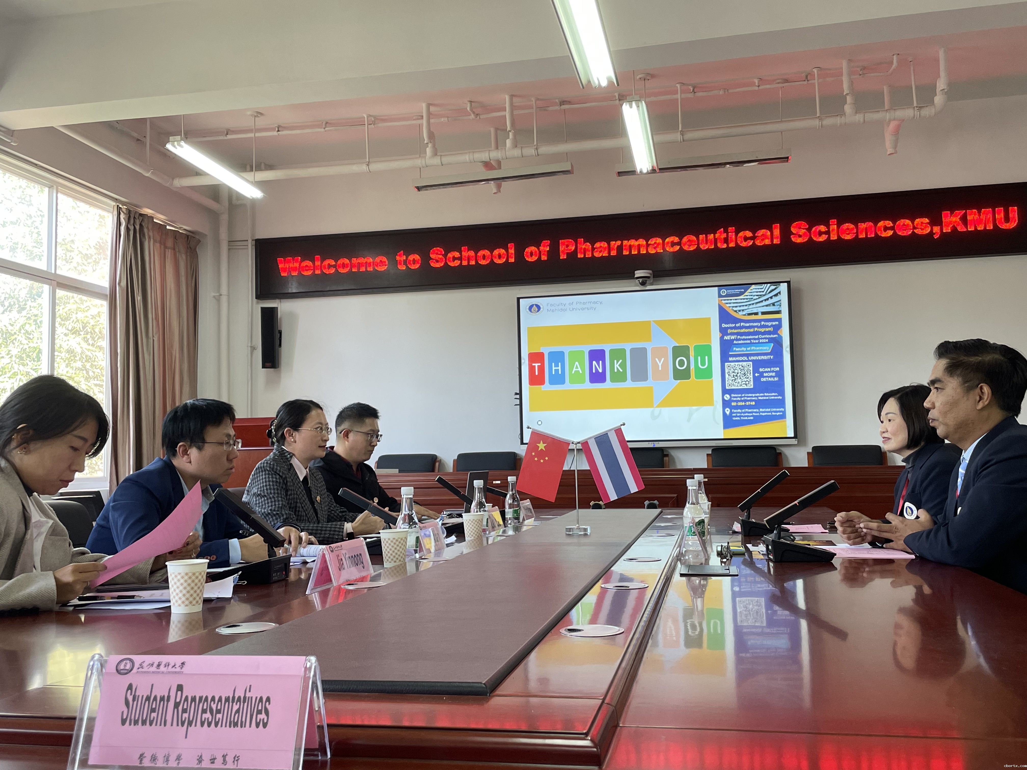 2023年10月18日,泰国玛希隆大学药学院分管外事副院长Usa Chaikledkaew博士与分管国际教育项目副院长Wichit Nosoongnoen博士来我院交流访问,两位外宾对我校建校90周年表示热烈的祝贺。药学院副院长陆露会见了来访外宾,学院教师与学生代表参与会谈。