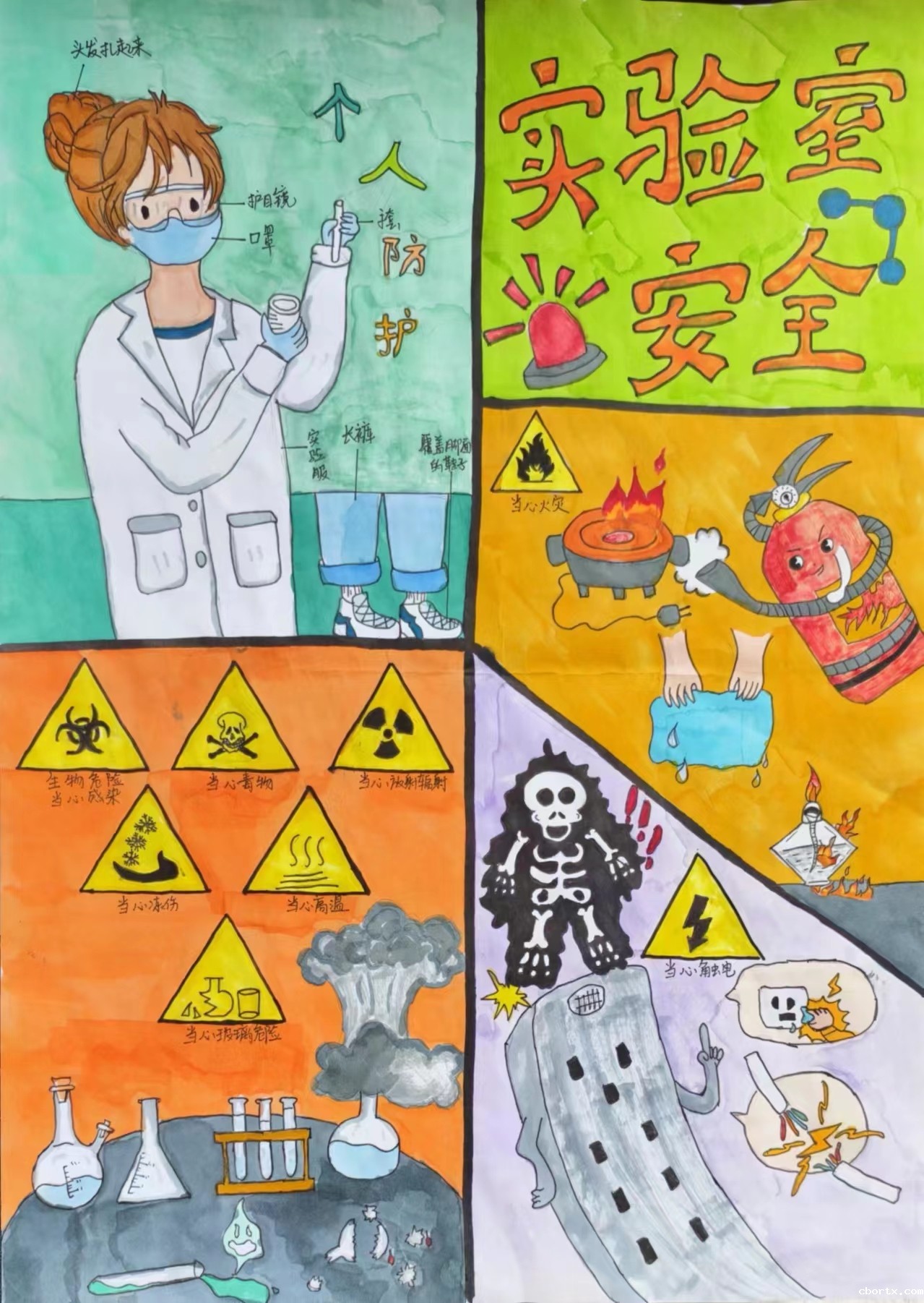 本次实验室安全科普绘画大赛以“安全教育,美育同行”为主题,自2024年3月20日至今,经过宣传动员、报名参赛、作品收集、学院评审等多个环节,最终评选出一等奖2名、二等奖3名、三等奖4名、最佳绘画奖和最佳主题奖各1名。