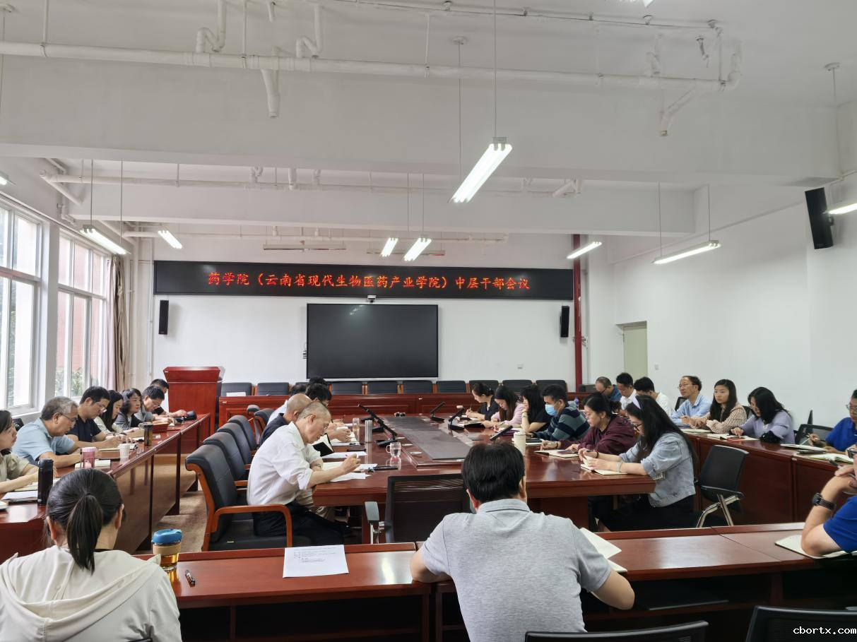 8月30日,药学院(云南省现代生物医药产业学院)在药学楼二楼会议室召开中层干部工作会议。会议由学院党委书记张有福主持,学院党政领导班子成员、中层干部、党支部委员参加会议。