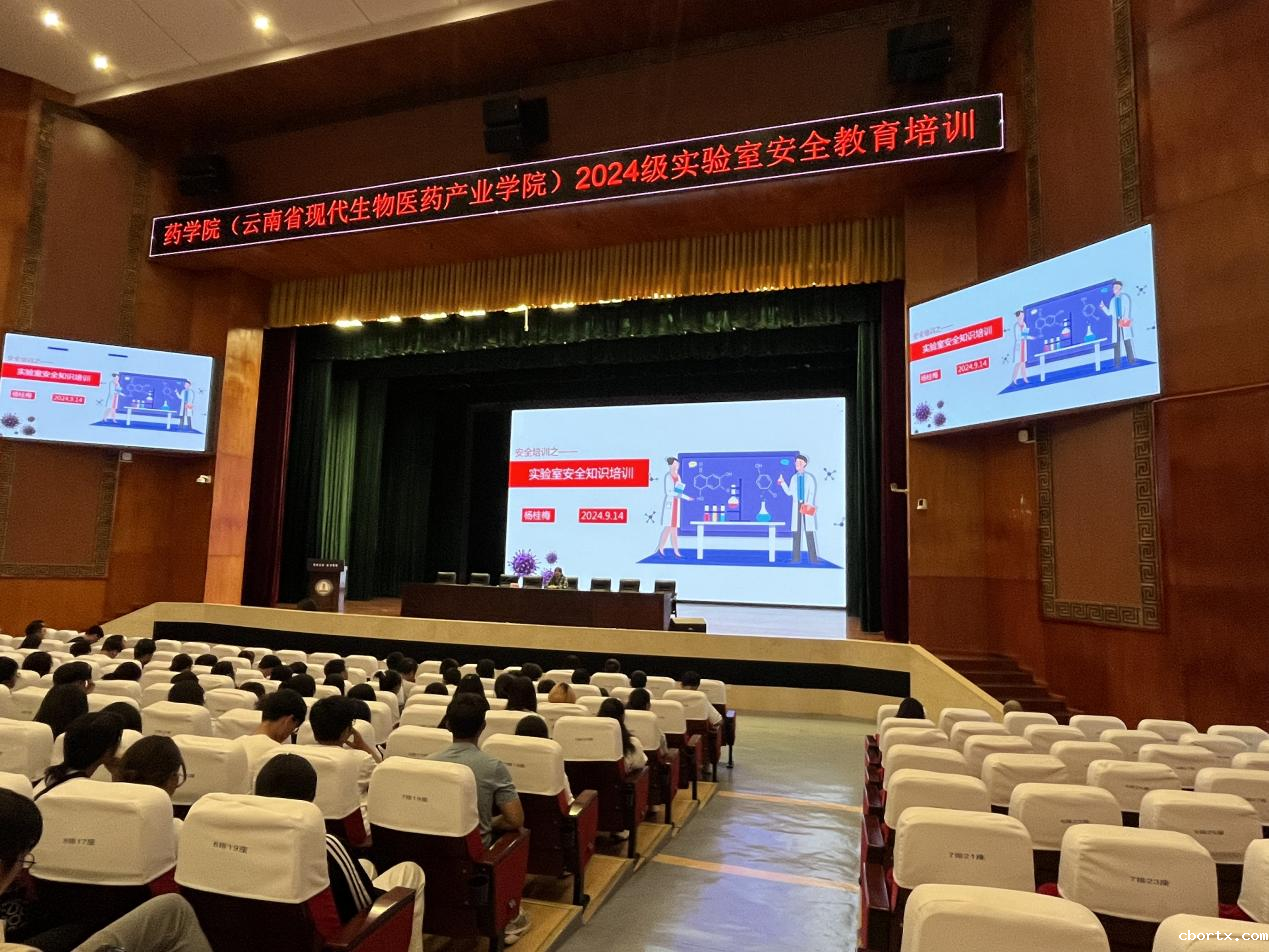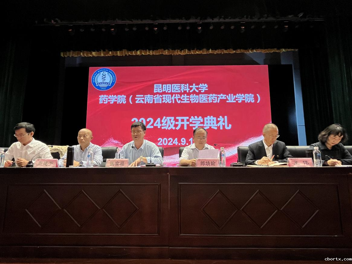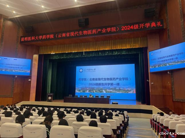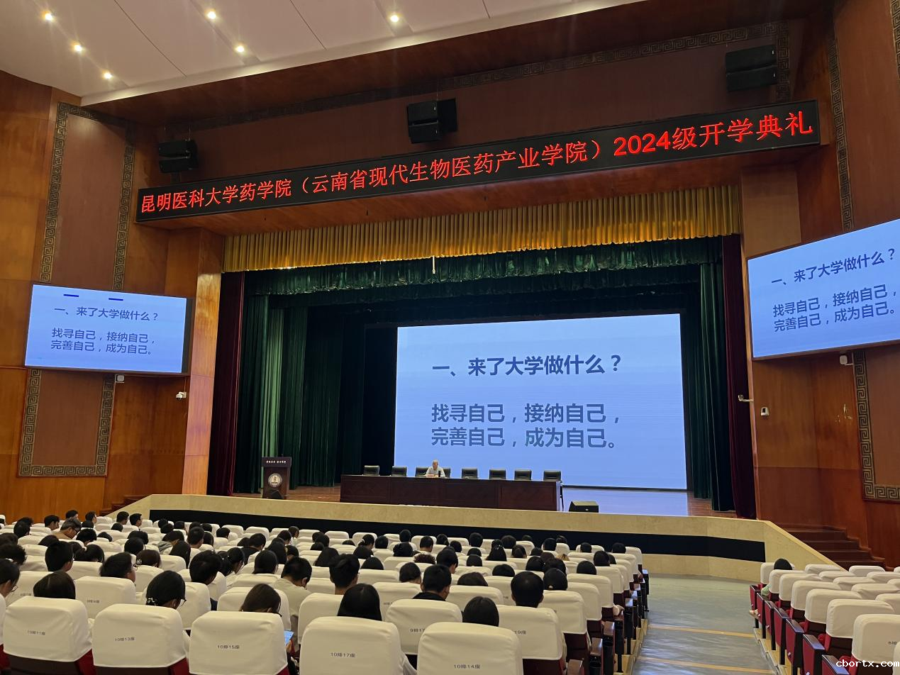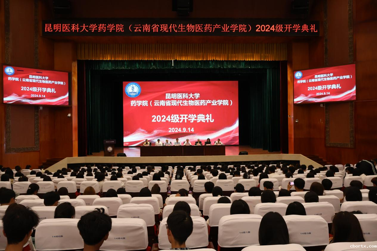 2024年9月14日下午,药学院(云南省现代生物医药产业学院)在学生会堂举行2024级新生开学典礼暨开学第一课。学院党政领导、党委委员,各系、部、中心、办公室、团委、党支部负责人,全体专职辅导员、2024级新生班主任,2024级全体本科生及研究生共500余人参加典礼。典礼由党委副书记周建于主持。
