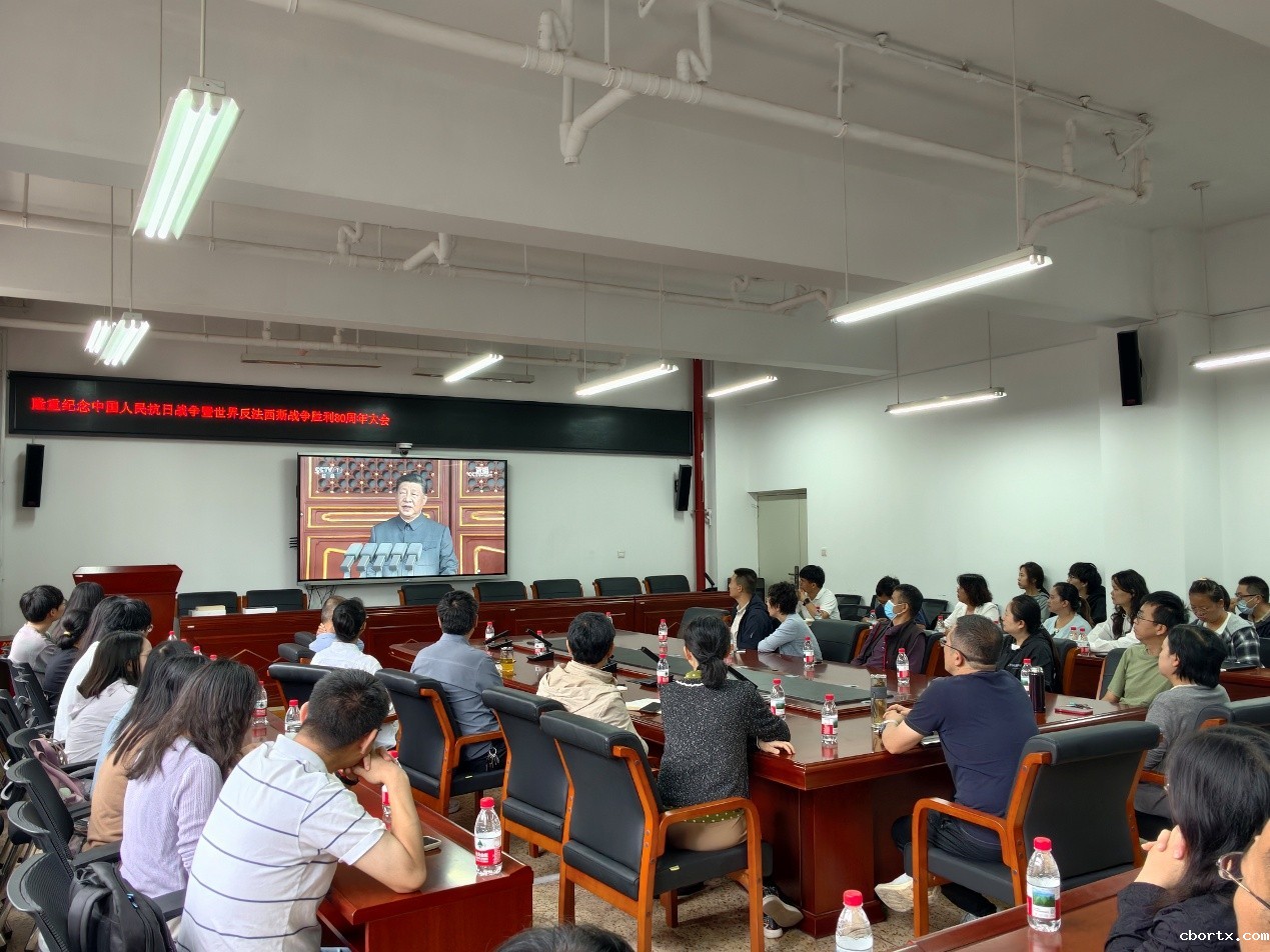 9月3日上午,纪念中国人民抗日战争暨世界反法西斯战争胜利80周年大会在北京天安门广场隆重举行。药学院组织师生在204会议室集中观看大会直播,铭记历史、缅怀先烈,共同见证强国力量。
