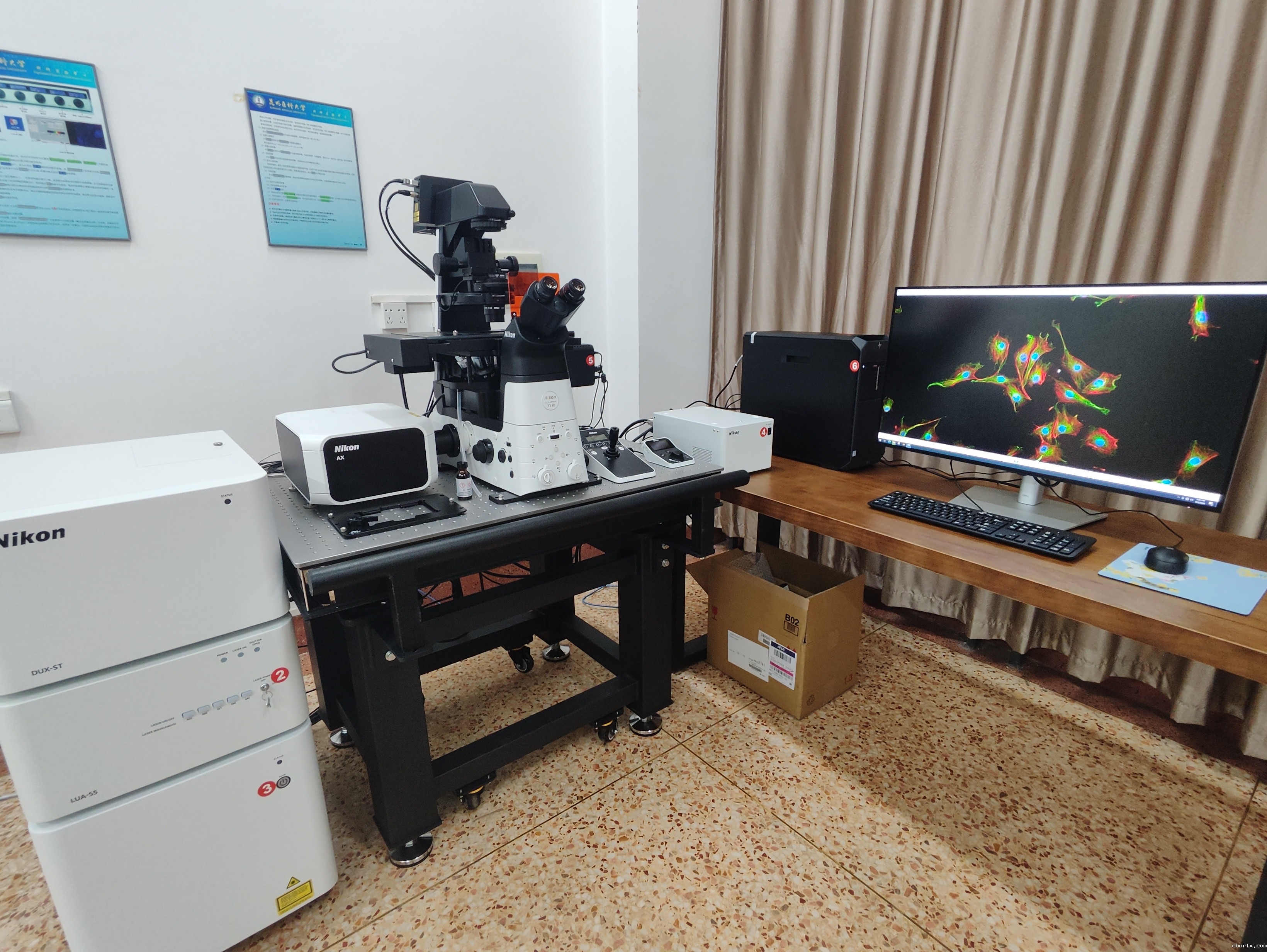 4.激光器:固体激光器5个,激光波长分别为405nm、488nm、561nm、594nm、640nm。