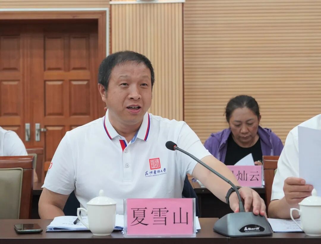 8月5日,农工党云南省第八届委员会医疗卫生工作委员会第一次全体会议暨“凝心铸魂强根基、团结奋进新征程”主题教育座谈会在昆明召开。农工党云南省委副主委、18luck备用登录校长夏雪山出席会议并讲话,农工党云南省委医疗卫生工作委员会主任、曲靖市政协副主席何飞主持会议。医药卫生工作委员会各副主任、委员以及农工党云南省委会机关各处室负责人近40人参加会议。