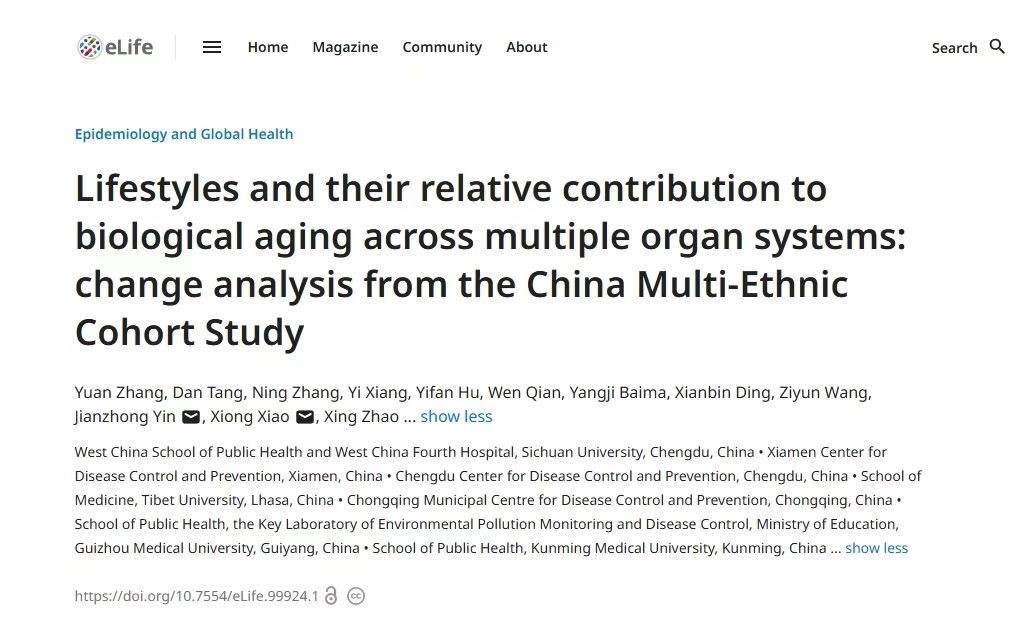 近日,四川大学肖雄副研究员团队和18luck备用登录殷建忠教授团队在生物学科领域顶级学术期刊eLife(中科院一区TOP期刊)发表了题为“Lifestyles and their relative contribution to biological aging across multiple organ systems: change analysis from the China Multi-Ethnic Cohort Study”的研究论文。