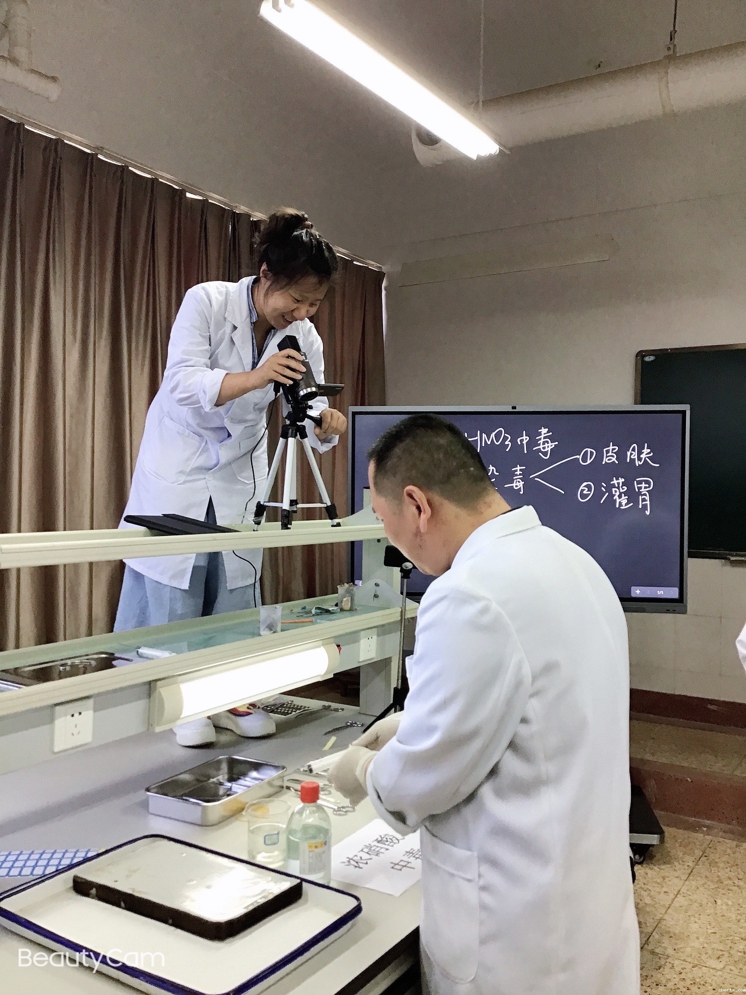 为做好此次视频录制工作,教学团队进行了精心组织,在拍摄前各位成员就分工安排、实验内容、技术操作等环节进行专题研讨及沟通,为录制工作做好充分的前期准备。在录制过程中,各成员积极主动,团结协作,使得录制工作有条不紊地开展。此次教学活动,不仅丰富了法医毒理学教学资源,为线上实验教学打下良好基础,而且对信息化教学进行了积极探索。