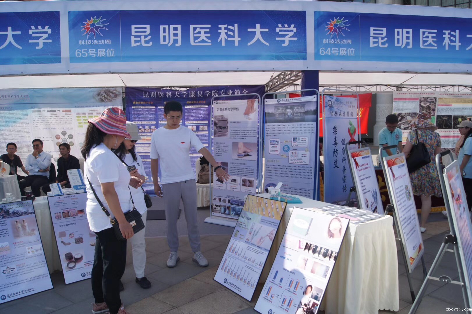 5月19日,云南省暨昆明市科技活动周及集中示范活动在云南省博物馆外广场举行。学校科技处牵头公共卫生学院、药学院、康复学院、技术转移中心、第一附属医院及第二附属医院等单位携优秀科技成果参加了示范展示。