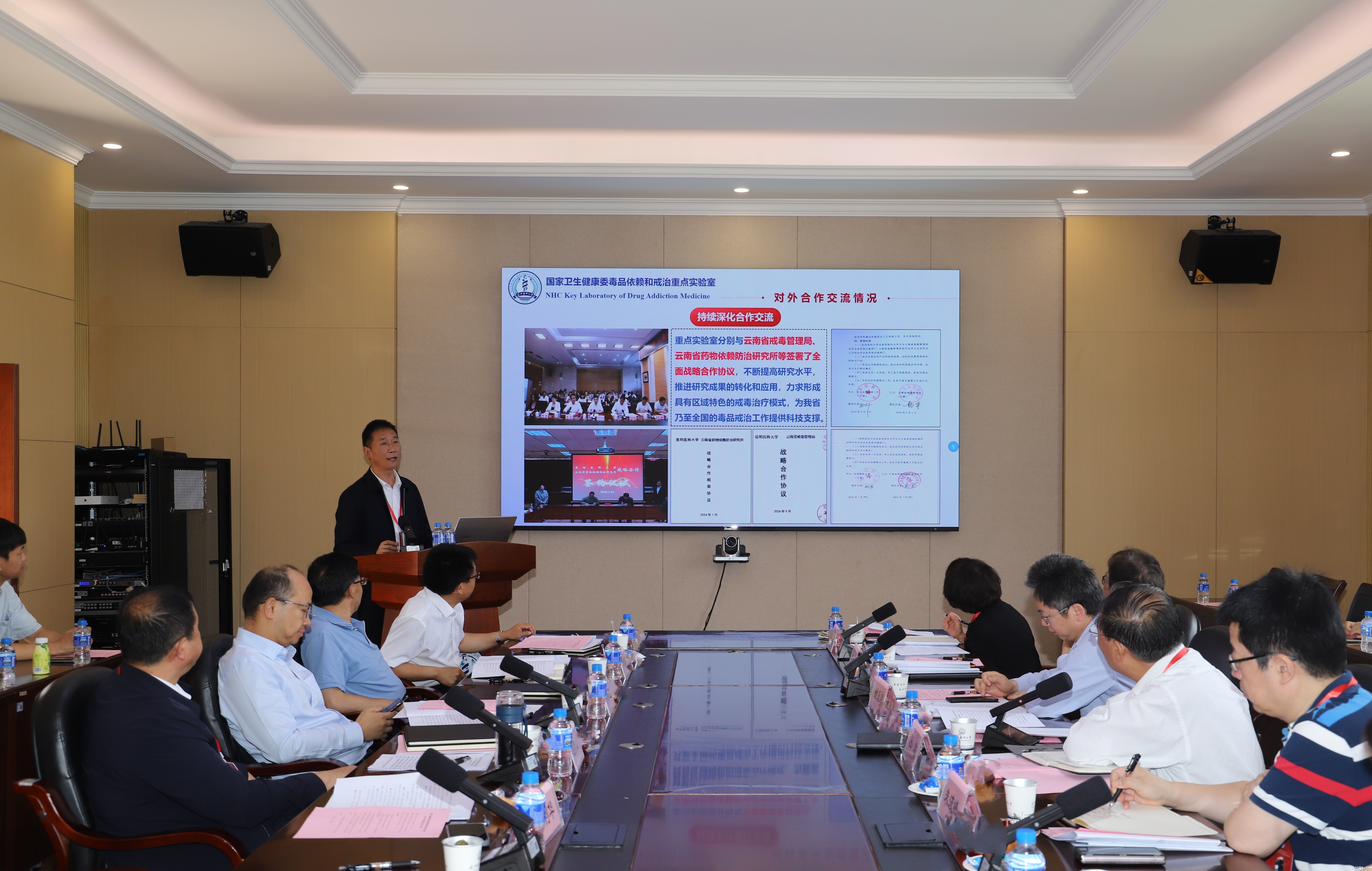 6月7日,国家卫生健康委员会毒品依赖和戒治重点实验室(以下简称重点实验室)召开2025年学术委员会会议。重点实验室学术委员会主任委员丛斌,副主任委员朱波峰,委员时杰、姚永刚、李生斌、李虹、杨华、赖江华,云南省卫生健康委员会副主任何梦煌、科教处处长李克林,学校校长夏雪山,学校党委常委、副校长、重点实验室主任李利华参加会议。丛斌主持会议。