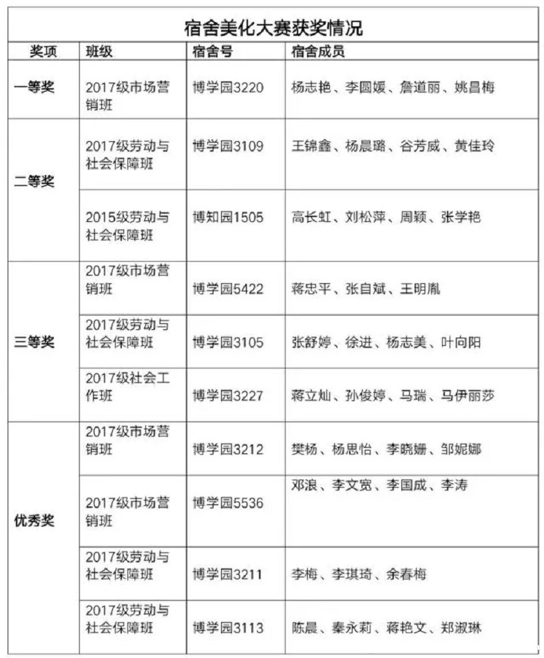 随着颁奖仪式的结束,人文与管理学院学生会第一届宿舍美化大赛圆满结束。宿舍整齐美观,更使生活温暖美好,更显人文与管理学院才子佳人那落落大方之态,和那“一屋不扫,何以扫天下”的宏远目标。此次宿舍美化大赛充分体现了同学们的青春活力和创新能力,展示了丰富多彩的宿舍生活,促进了宿舍之间的和谐融洽,给各位同学们的大学宿舍生活画上了浓墨重彩的一笔。