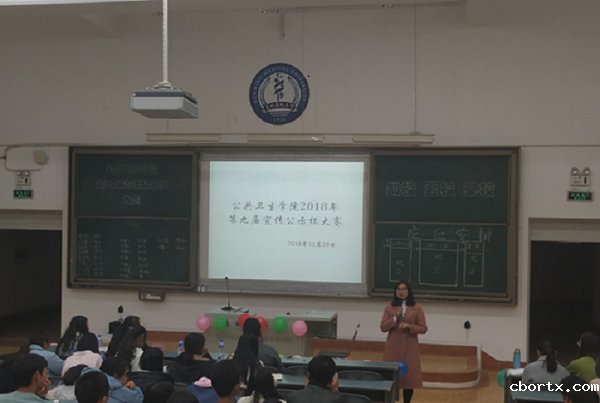 为加快校园文明建设、丰富校园文化生活、培养同学们的动手及表达能力、更好的发挥宣传公示栏的作用、营造良好的校风和学风,2018年11月29日,公共卫生学院在教学楼5104举办了以“知校·爱校·荣校”为主题的宣传公示栏大赛,公共卫生学院徐卫琼、邓文航、高艳香、邹伟、王立萍等五位老师和18级各班的宣传委员担任评委,200余名同学作为观众参加了本次活动。