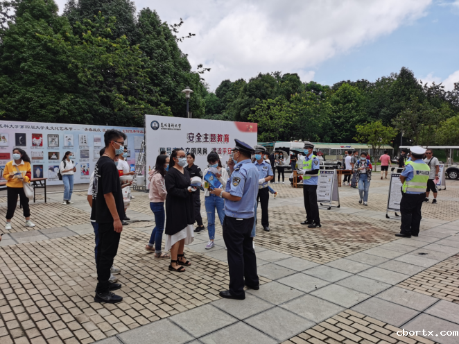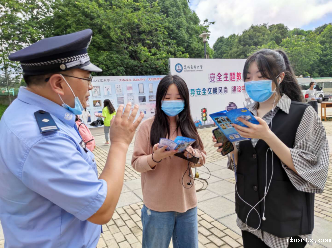 为全面贯彻落实彻全国学校安全工作暨云南省学校安全工作视频会议精神,继续深化平安校园建设,引领广大师生树牢安全意识,构筑安全防火墙。保卫处于6月19日联合昆明市呈贡公安分局、昆明市交警支队五大队在校园开展了一场以反诈骗、反恐,交通警示教育等为主要内容的安全宣传教育活动。