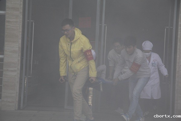 保卫处接到警情后,迅速启动了《18luck备用登录突发事件应急处置预案》。各位老师和治安志愿者按照《预案》迅速到达指定位置,引导楼内学生快速疏散撤离;同学们利用毛巾、手帕、衣袖等捂着口鼻,弯腰有序地按指定路线紧急“逃生”,撤离至学校空旷、安全地带;学校义务消防队携带灭火装备迅速赶赴火灾现场,将火情清除,并对楼内所属房间进行了逐一搜寻,确保师生全部撤离;医务组对浓烟中疏散出来的学生进行身体检查;治安志愿者在医务人员的指挥下,用担架将受伤同学运至指定地点,由医生实施救护。