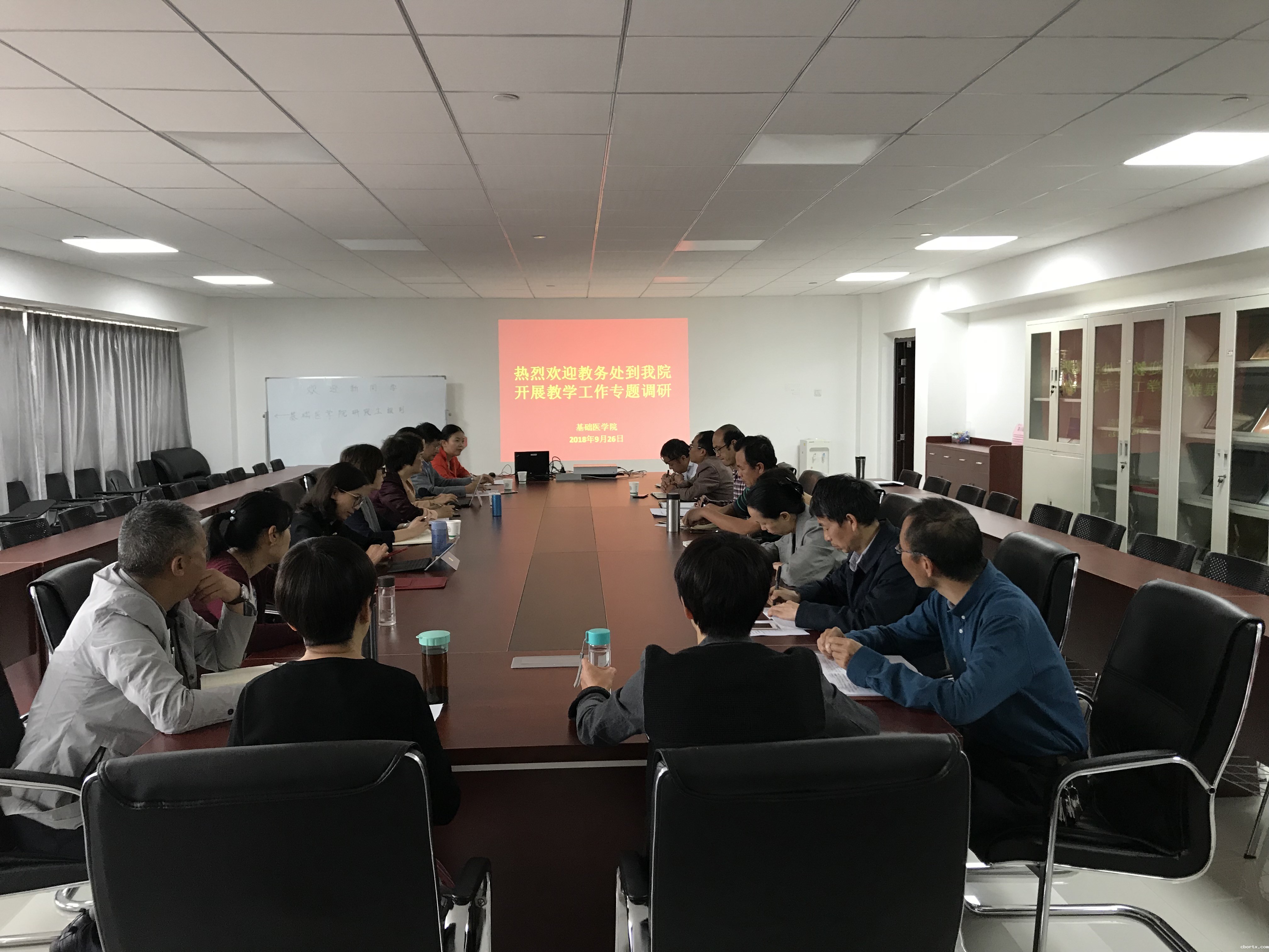 9月26日上午,学校副校长李燕,教务处、质控中心和国际教育学院负责人一行6人到基础医学院开展教学工作专题调研,基础医学院党政领导、教学办和各系、中心负责人参加调研座谈会。