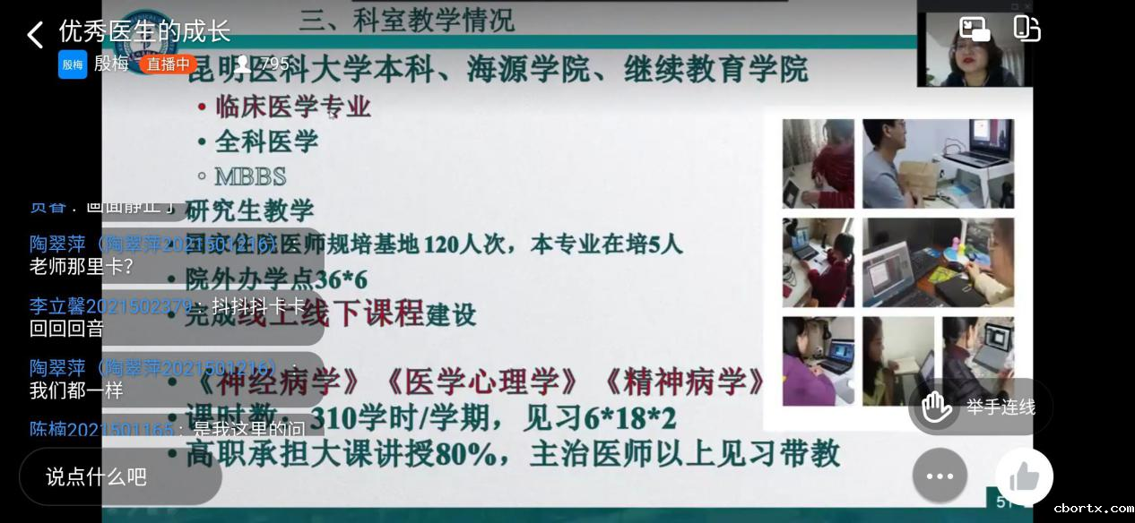 为了让我院广大学子认识学医的使命与担当,明确学医的初心。2021年10月21日,由基础医学院教学办主办、学生会承办的“如何做一名好医生”线上讲座于19:30在钉钉群进行了直播。此次讲座有幸邀请到了18luck备用登录第二附属医院神经内科主任、神经病学教研室主任殷梅老师来为同学们讲解,2020级的五百余名同学观看了直播。