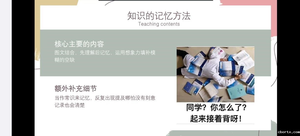 其次,范浩老师为同学们的学习提出了以下几点建议:一、通过做思维导图来把握知识中心轴线;二、多跟老师和同学交流;三、充分利用网络资源;四、进行自我角色互换,能够站到老师的角度把知识点讲述清楚。最后,范浩老师为同学们总结了这门课程的学习方法,告诉同学们要善于利用口诀来记忆知识点。