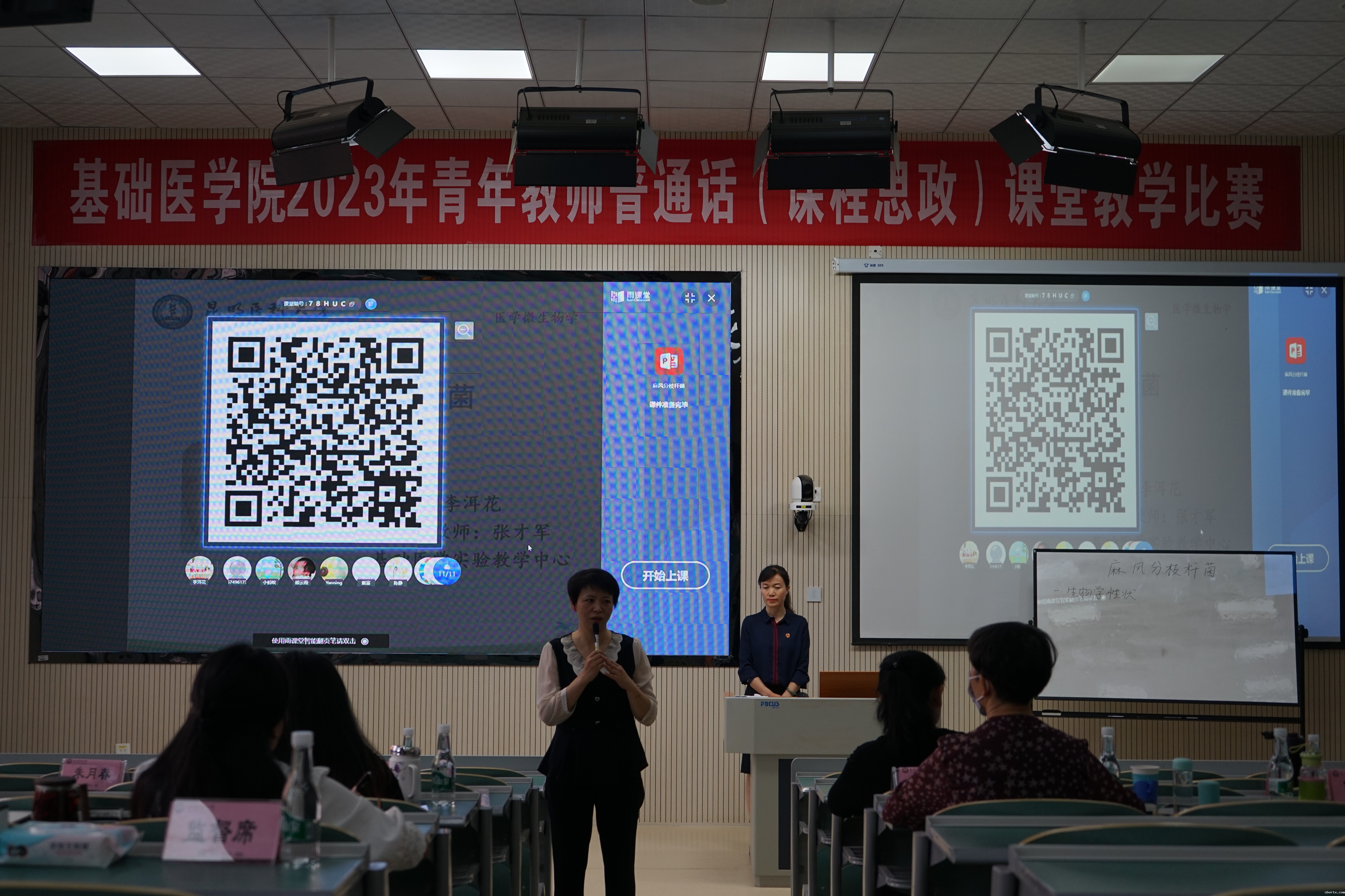 决赛是说课和教案的评比,学院特邀评委对4位参赛教师从课程内容的教学设计思路,课程思政设计和以学生为中心课堂教学的思路、举措、评价等方面进行了点评并提出了许多建设性意见和建议。参赛教师和在座进行观摩学习的所有教师都受益匪浅。经过决赛的激烈角逐,比赛评选出病原生物学与免疫学系王丽明、病理学与病理生理学系陈苗苗2位参赛老师代表基础医学院参加学校层面的讲课比赛。